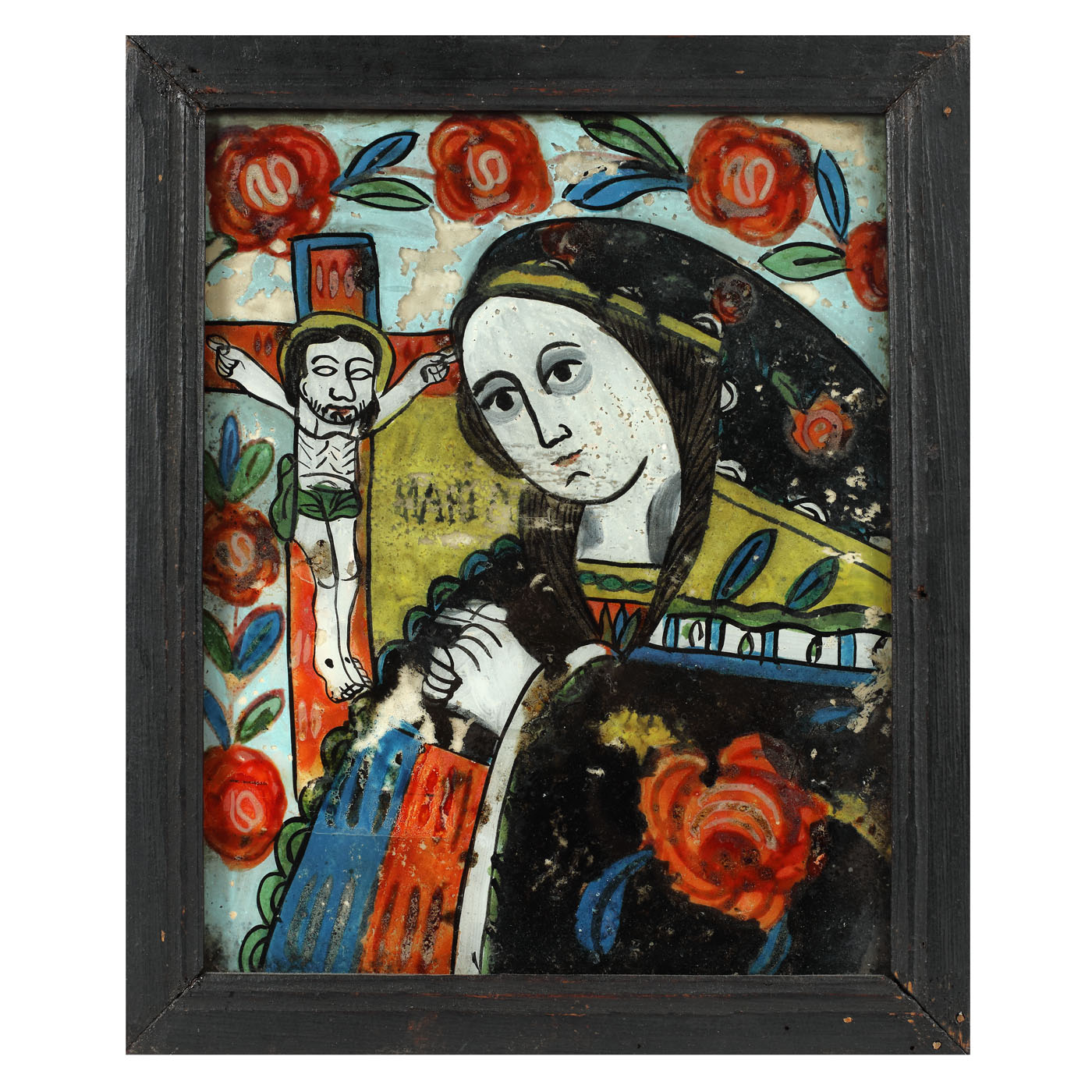 58. Icoană pe glajă, "Maica Domnului Îndurerată", atelier transilvănean (Gherla), jumătatea sec. XIX, provine din colecția muzeologului Alexandru Marinescu