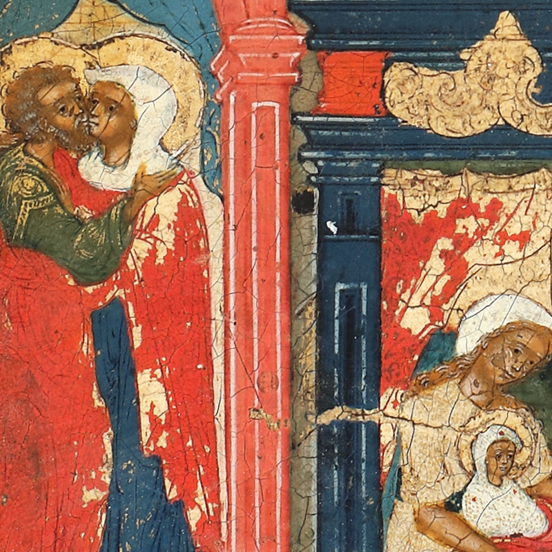 66. Icoană pe lemn, cu ferecătura din argint, ”Nașterea Maicii Domnului”, școală rusească (Stroganov), jumătatea sec. XVII, piesă rară, de colecție