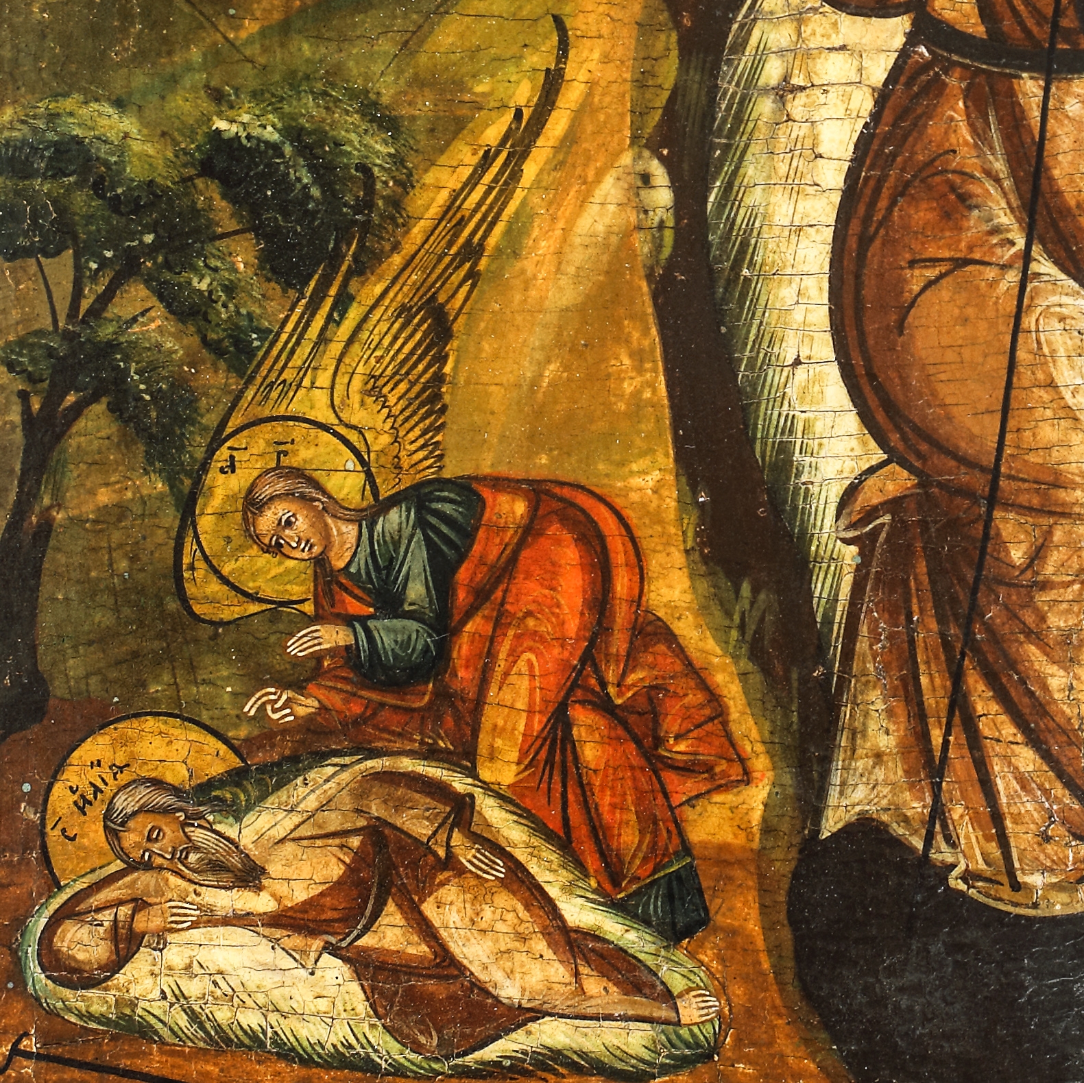 În registrul de sus, Sfântul Ilie în car se ridică la cer, jos, pe pâmânt sunt ilustrate episoade din viața sa.