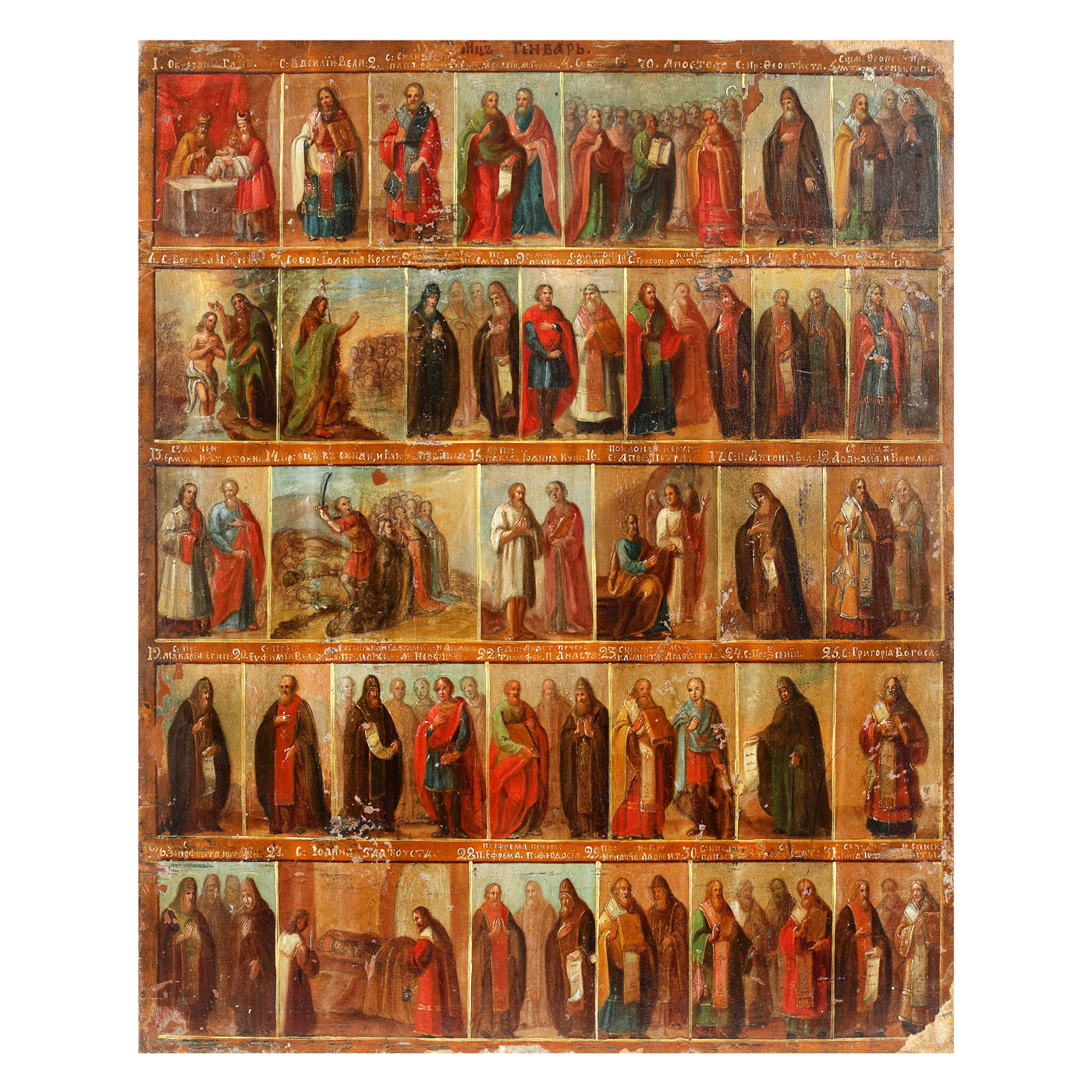 49. Icoană pe lemn, ”Mineiul lunii Ianuarie”, școală rusească, sfârșitul sec. XIX