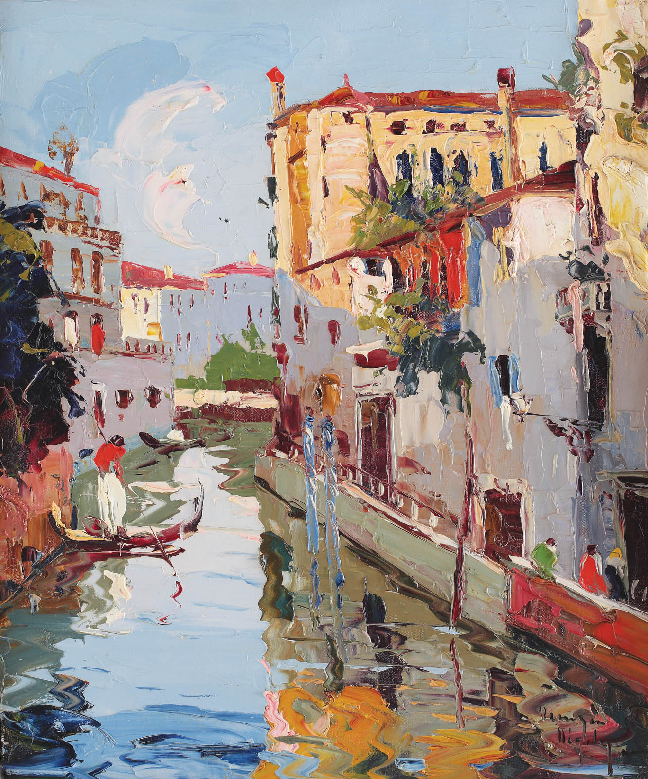 semnat, localizat şi datat dreapta jos, cu negru,Veneţia, Negely, (19)32