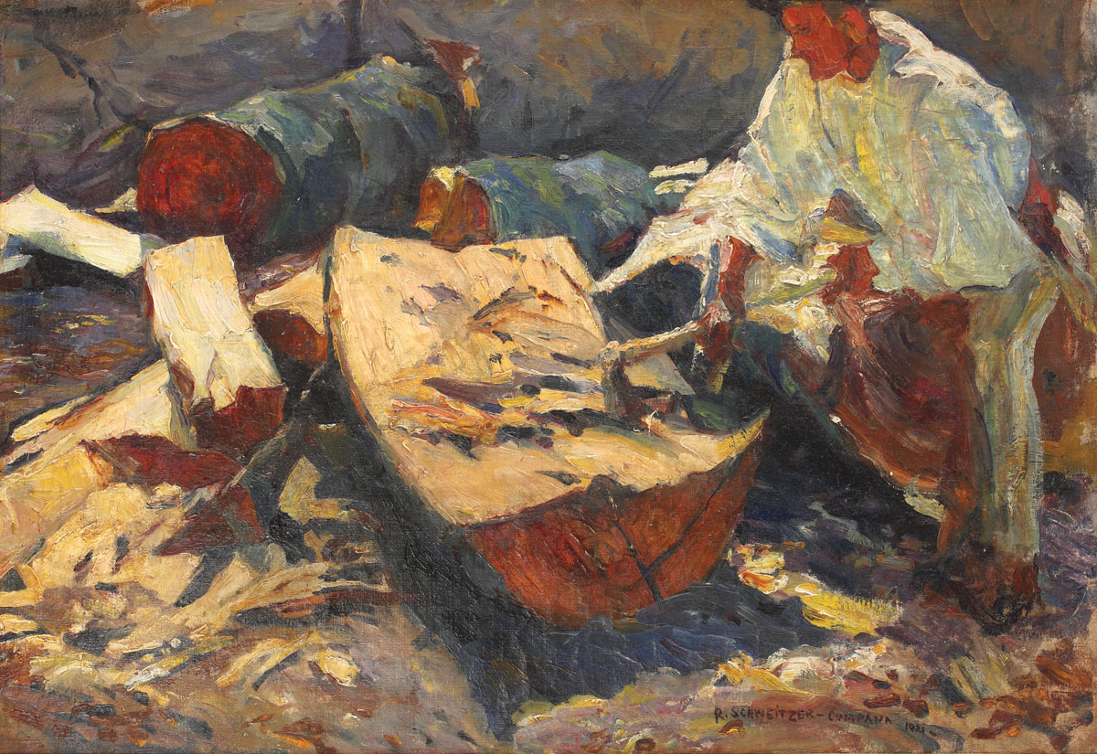 semnat şi datat dreapta jos, cu negru, R. SCHWEITZER-CUMPĂNA, 1921