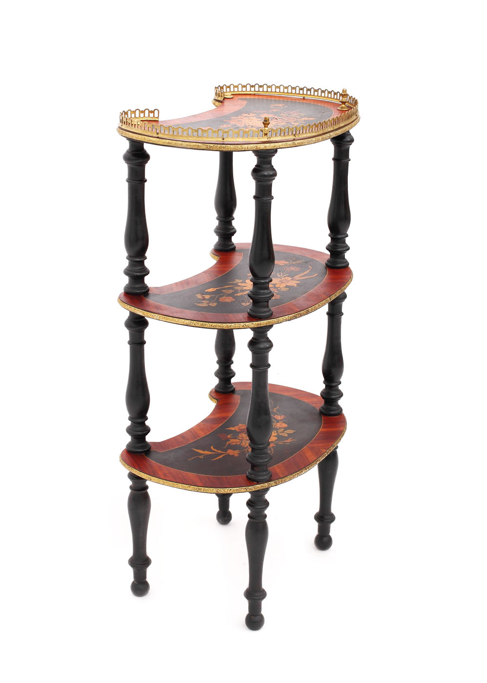 421. Etajeră din lemn de esențe exotice, începutul sec. XX