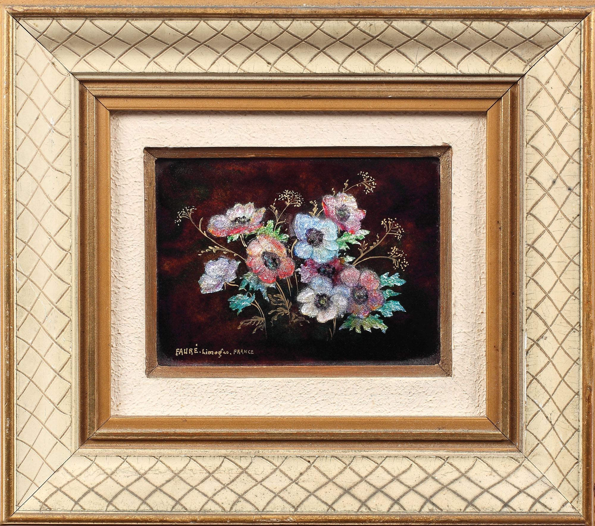 206. "Anemone" - panou decorativ Limoges, pictat în email de Camille Fauré, cca. 1940 [Sec. XX]