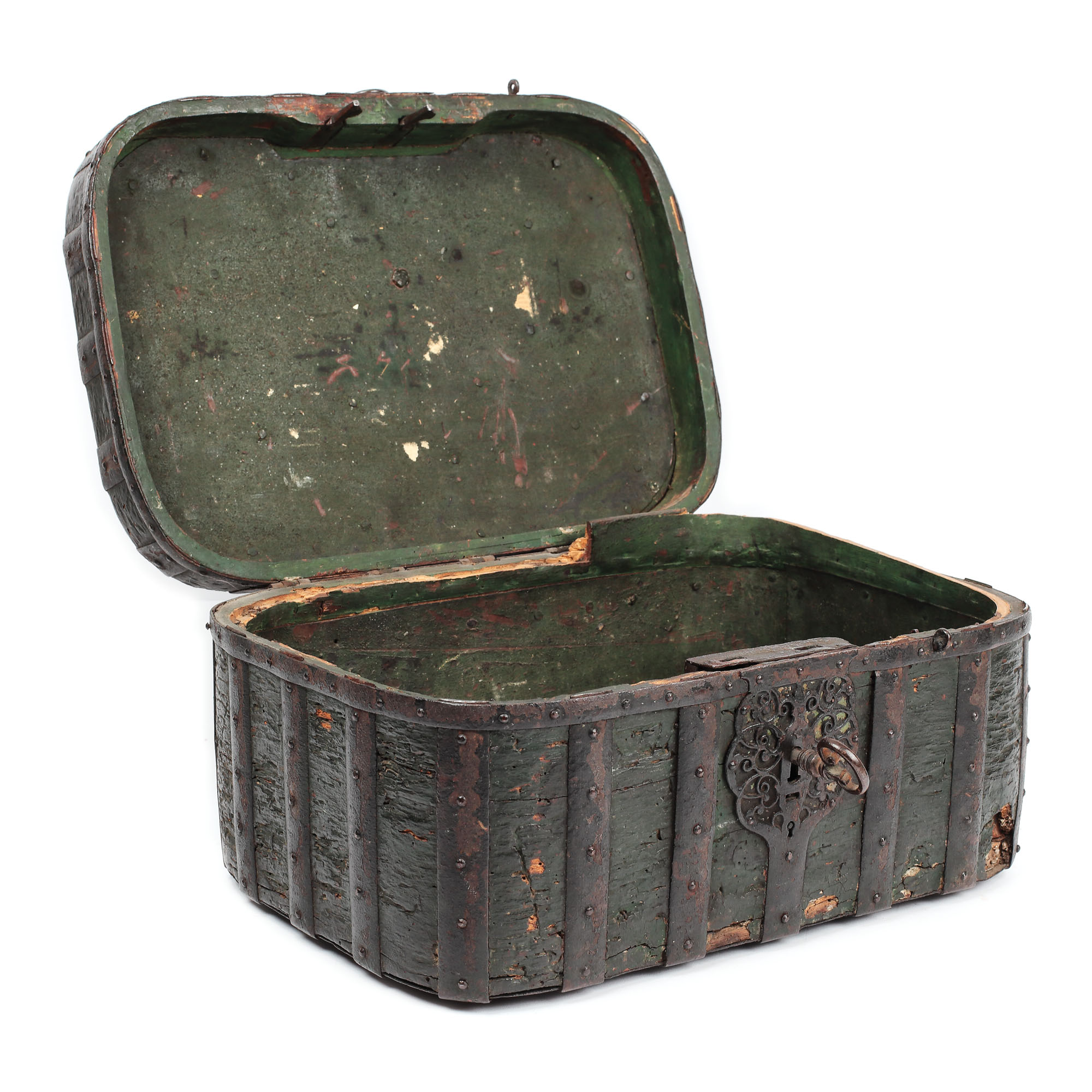 172. Interesant cufăr de călătorie, din lemn și metal, sec. XIX