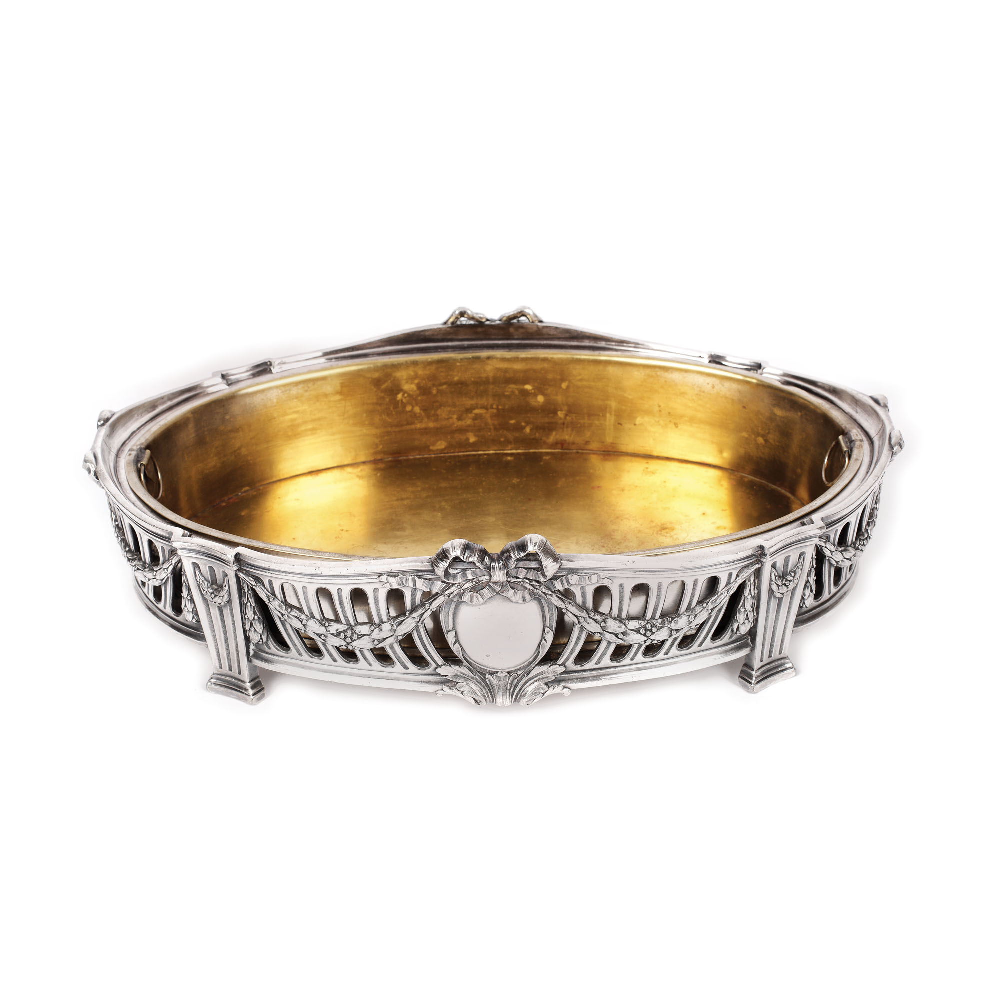 Jardinieră cu decor Louis XVI, decor treiaj cu medalioane convenționale, subliniat de ghirlande vegetale și rubane.