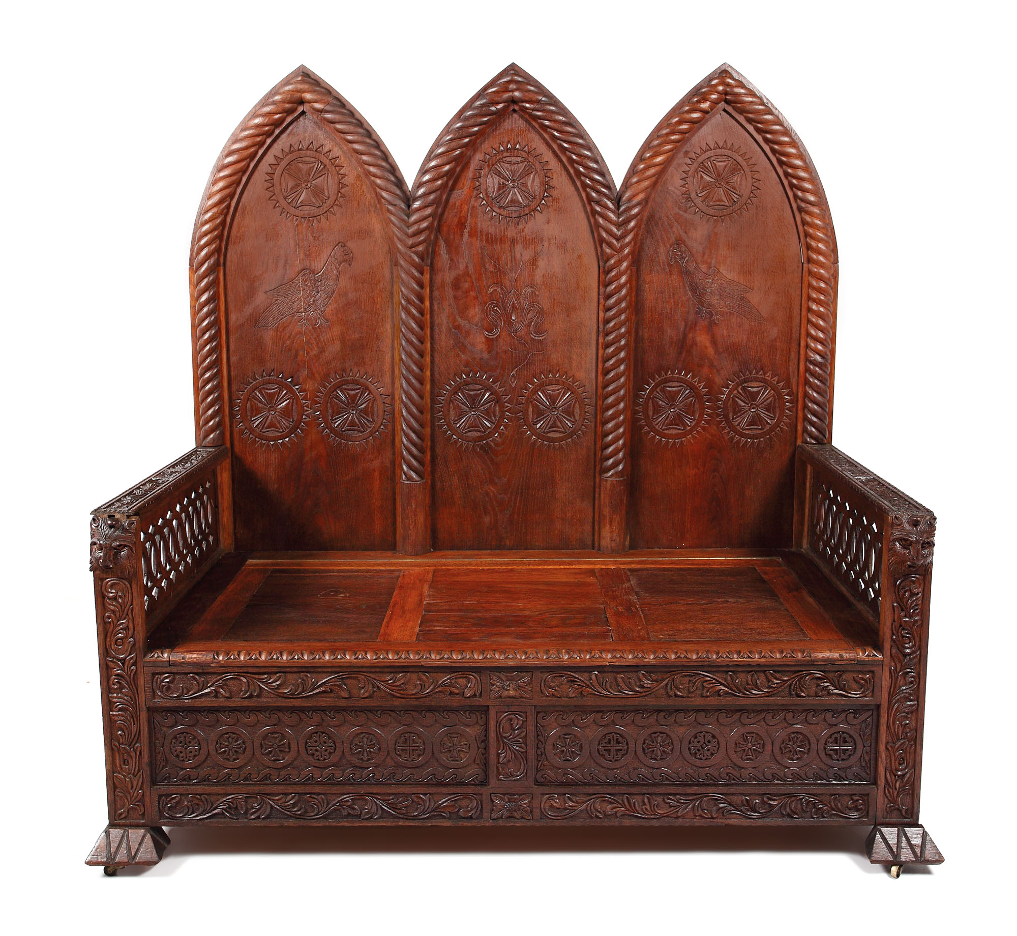 176. Monumentală banchetă în stil Neo-Românesc, începutul sec. XX