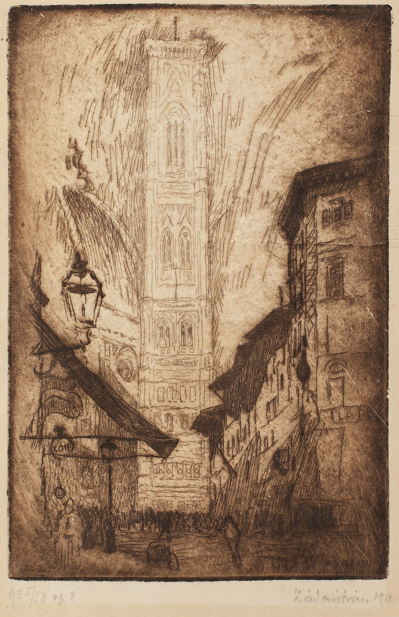 semnat şi datat, gravat, dreapta jos, în placă, "ZADOR, 1911"; semnat şi datat dreapta jos, în creion, "Zádor István, 1911"; numerotat stânga jos, în creion, "no. 5/50"