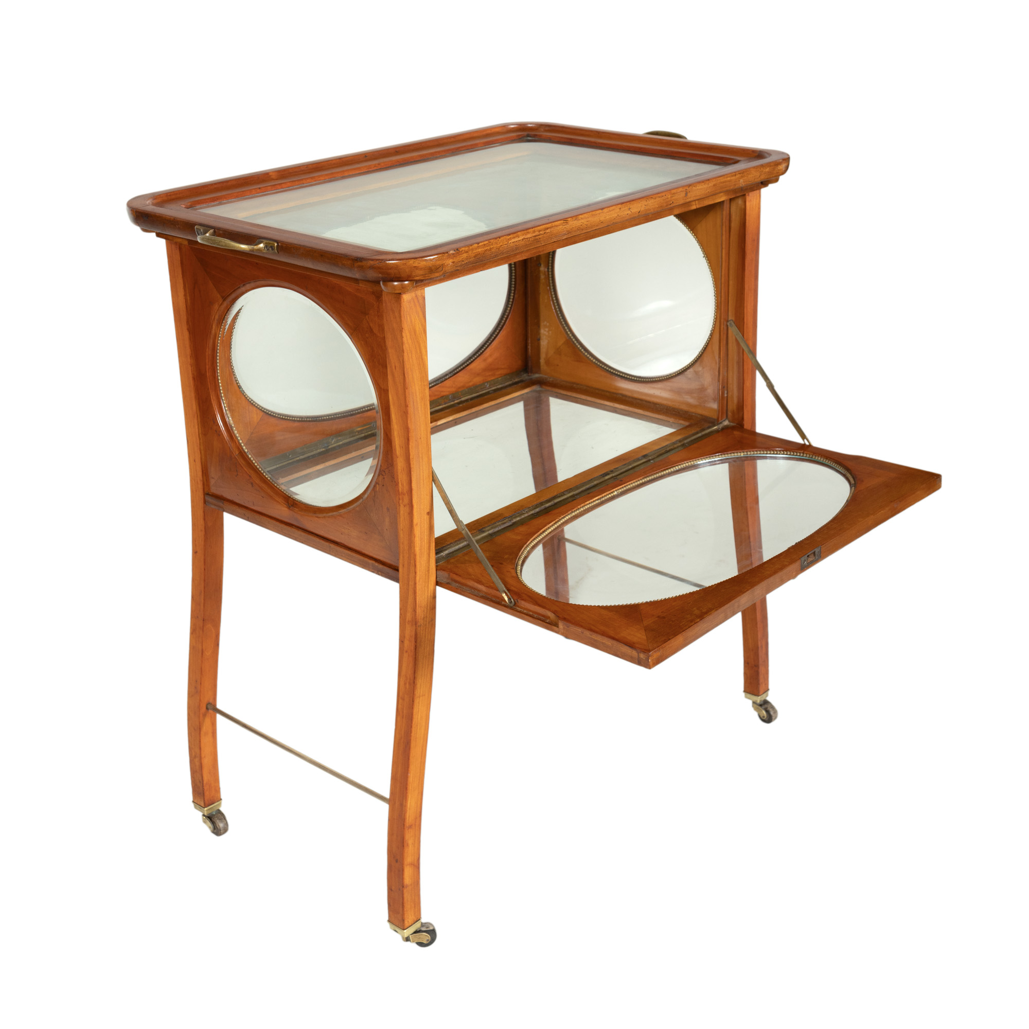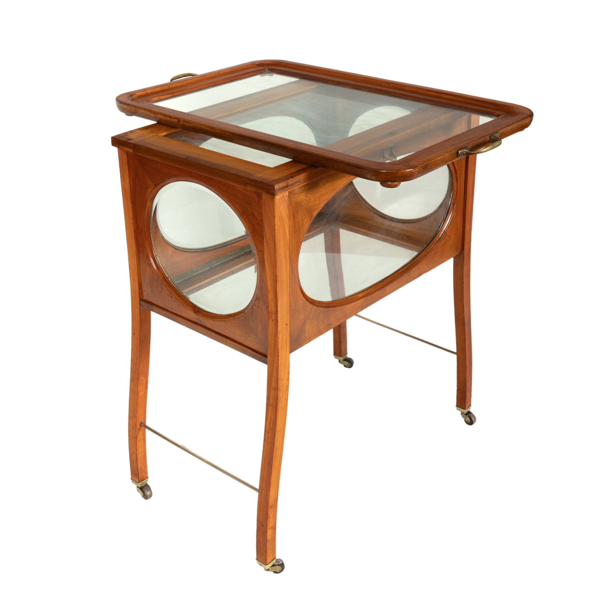2. Bar Art Nouveau, din lemn de nuc și cristal, cu tavă detașabilă, cca. 1920