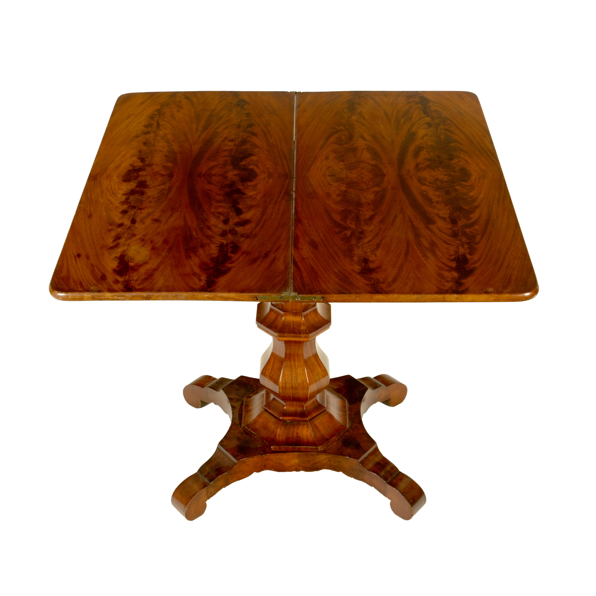 55. Consolă (sau masă) Biedermeier din lemn de acaju, furniruit cu rădăcină de nuc, sec. XIX