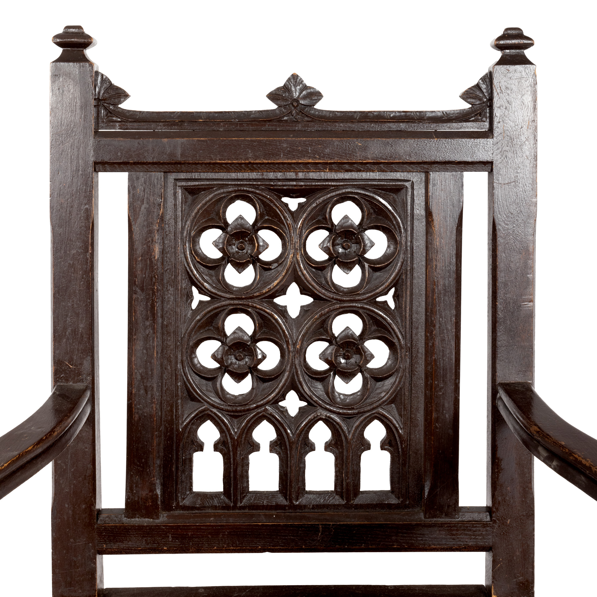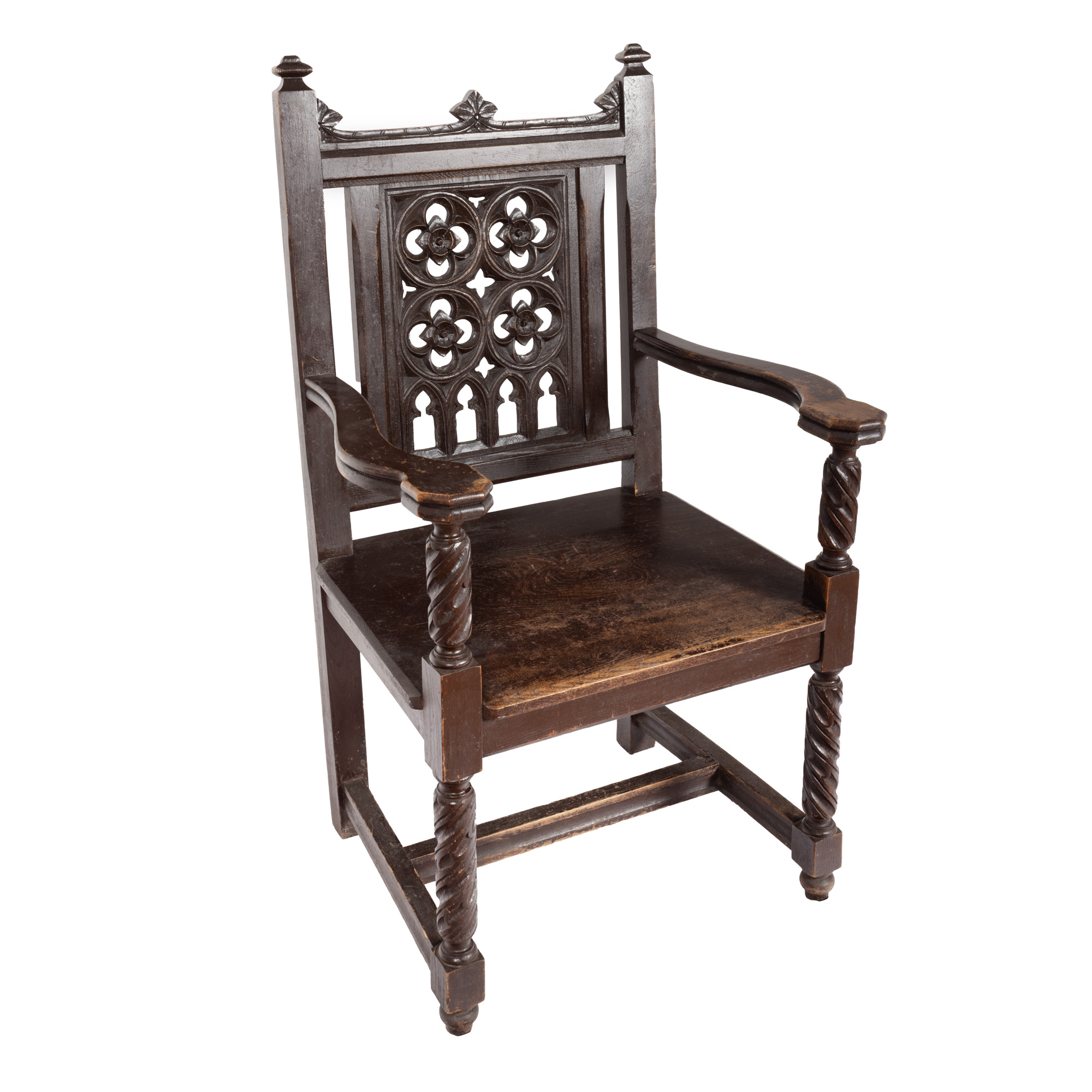 22. Jilț Neo-Gotic din lemn ebenizat, ornat cu panou sculptat în model floral și picioare frontale torsate, sec. XIX