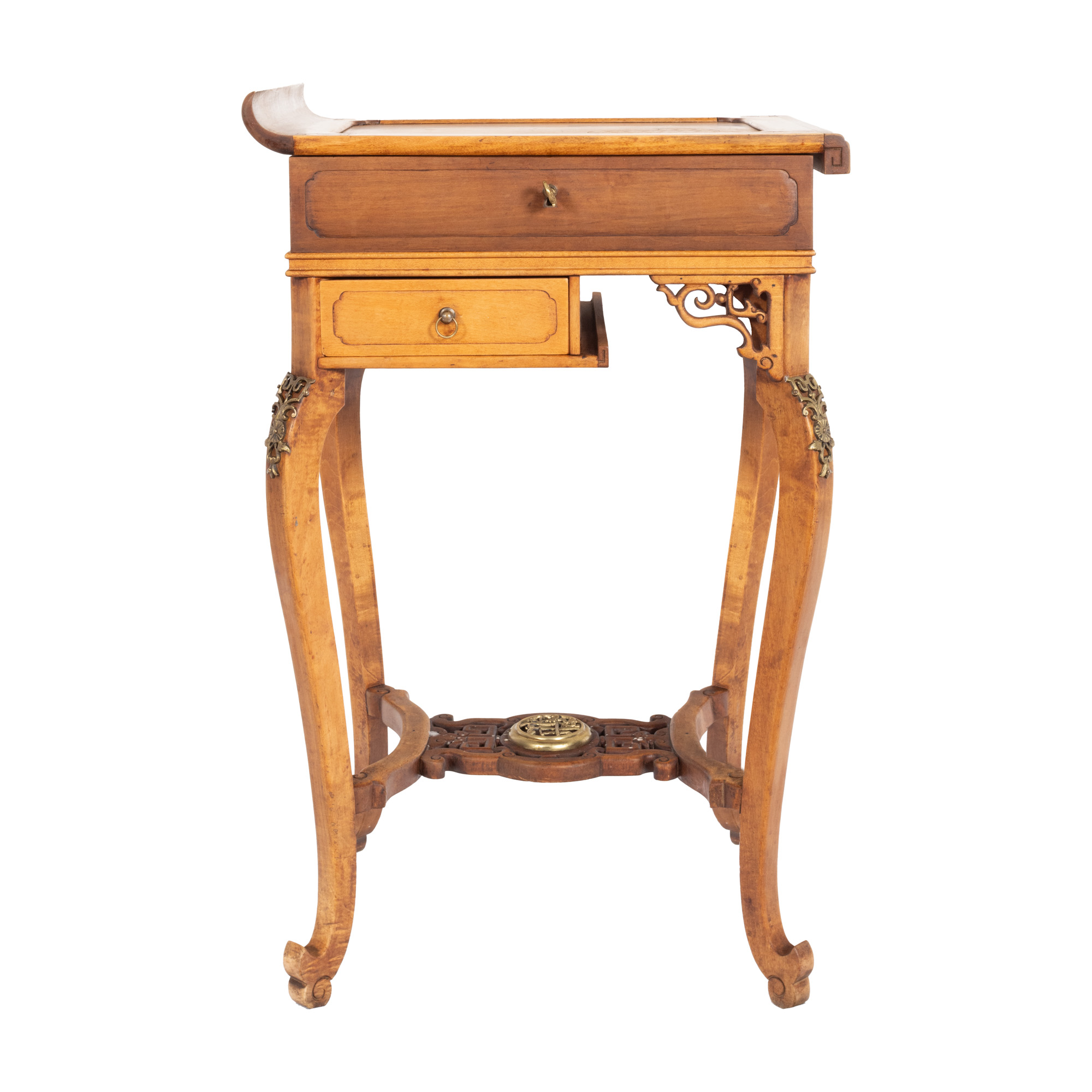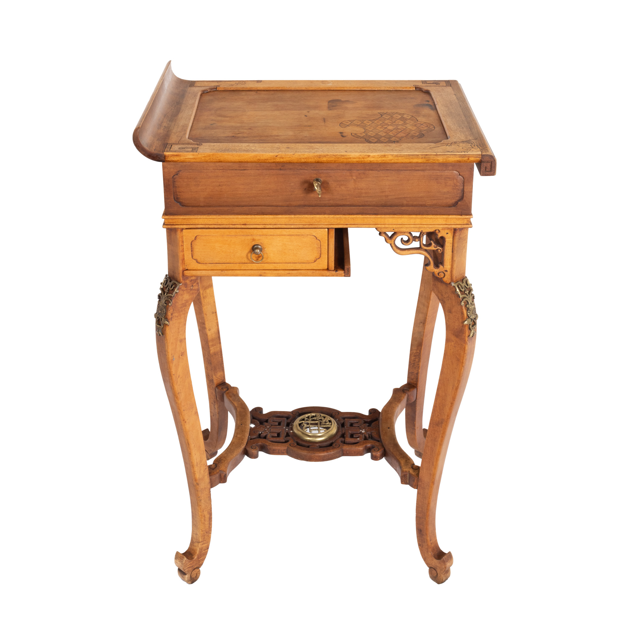 58. Măsuță din lemn de acaju, cu decor chinoiserie, începutul sec. XX