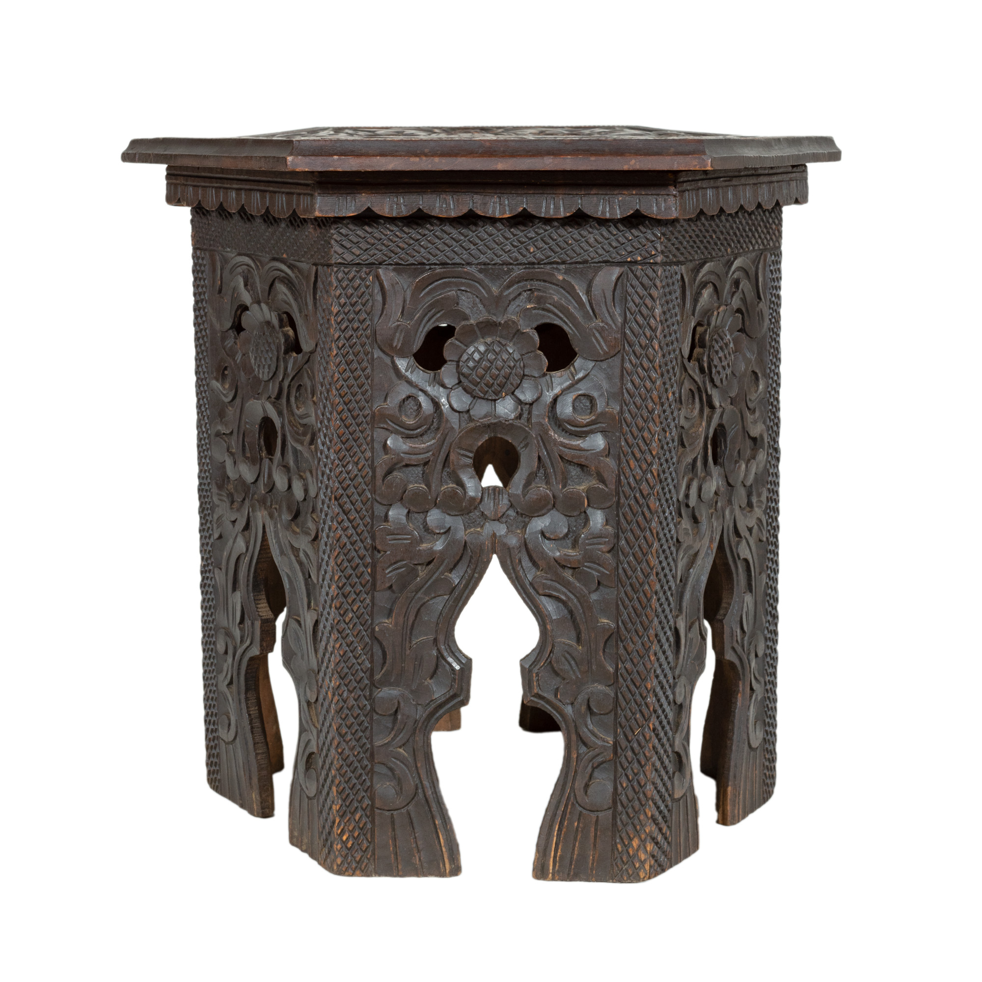 15. Măsuță pentru cafea, în stil Maur, din lemn ebenizat, mijlocul sec. XX