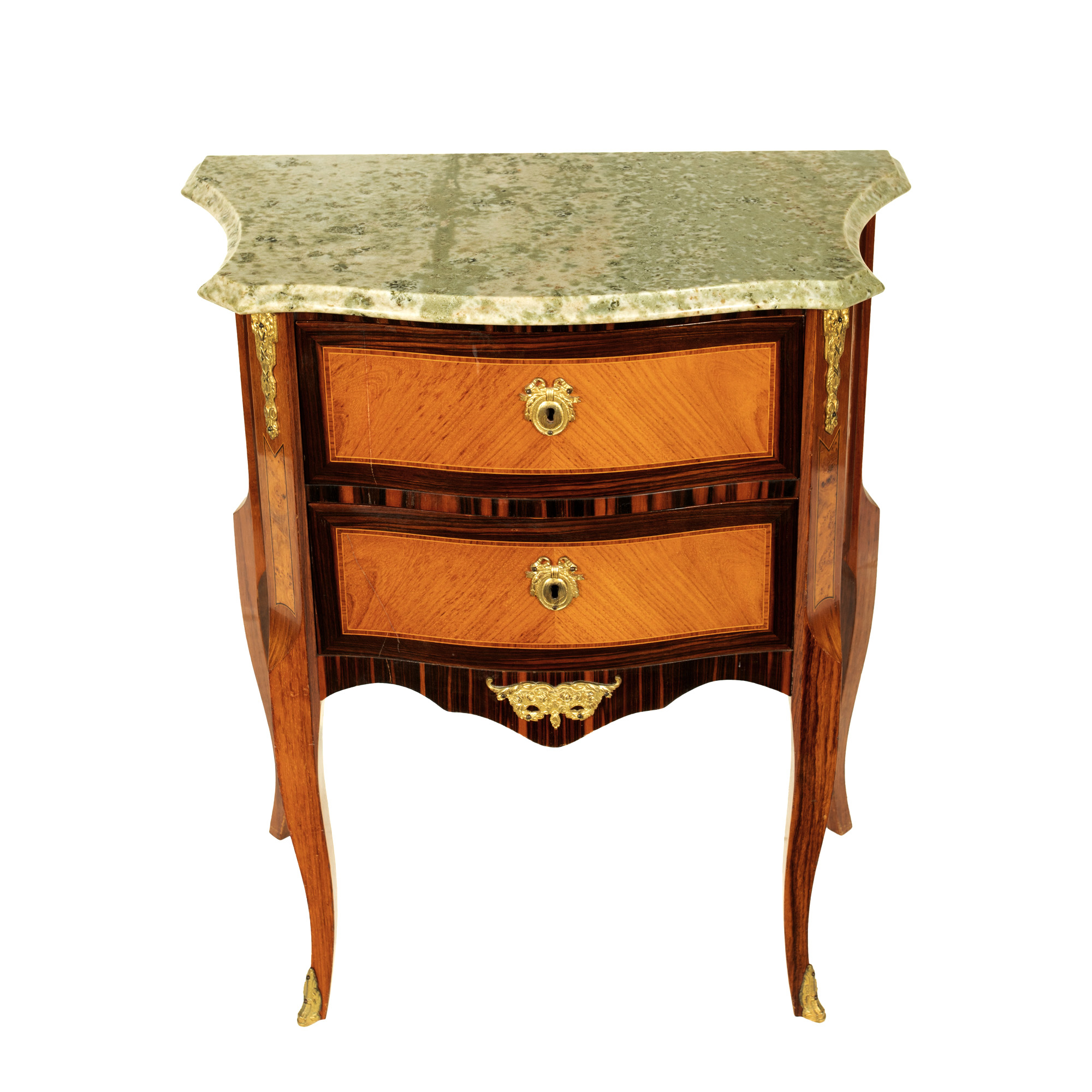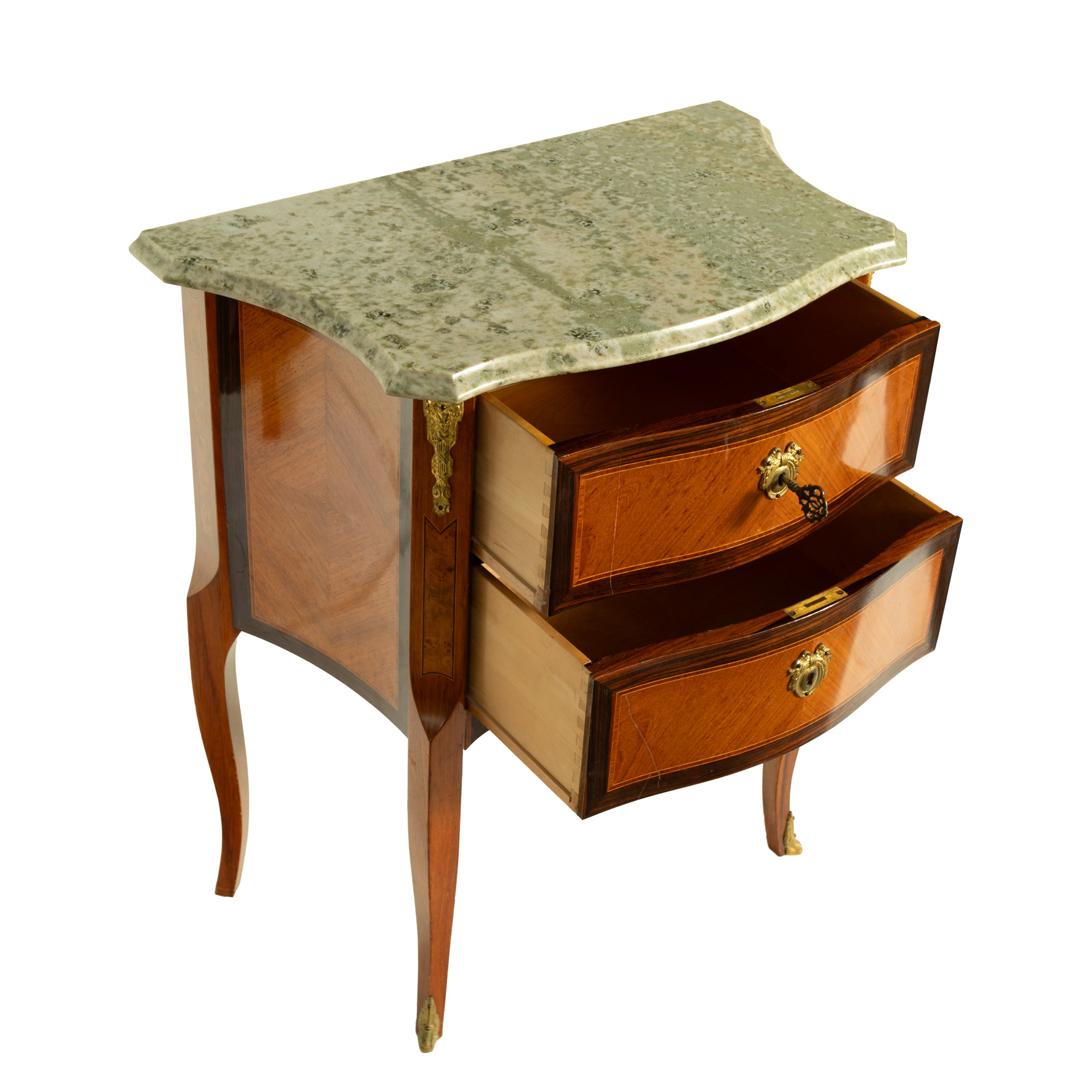 34. Mică comodă Louis XV, cu marchetărie din lemn de trandafir, începutul sec. XX