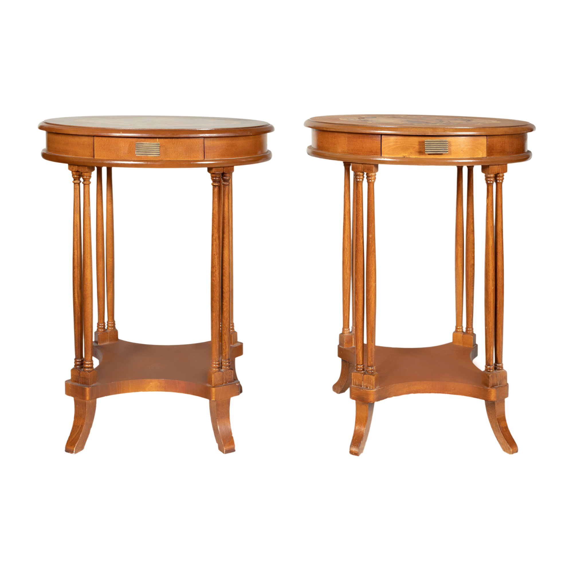 104. Pereche de noptiere din lemn de nuc intarsiat, cca. 1940