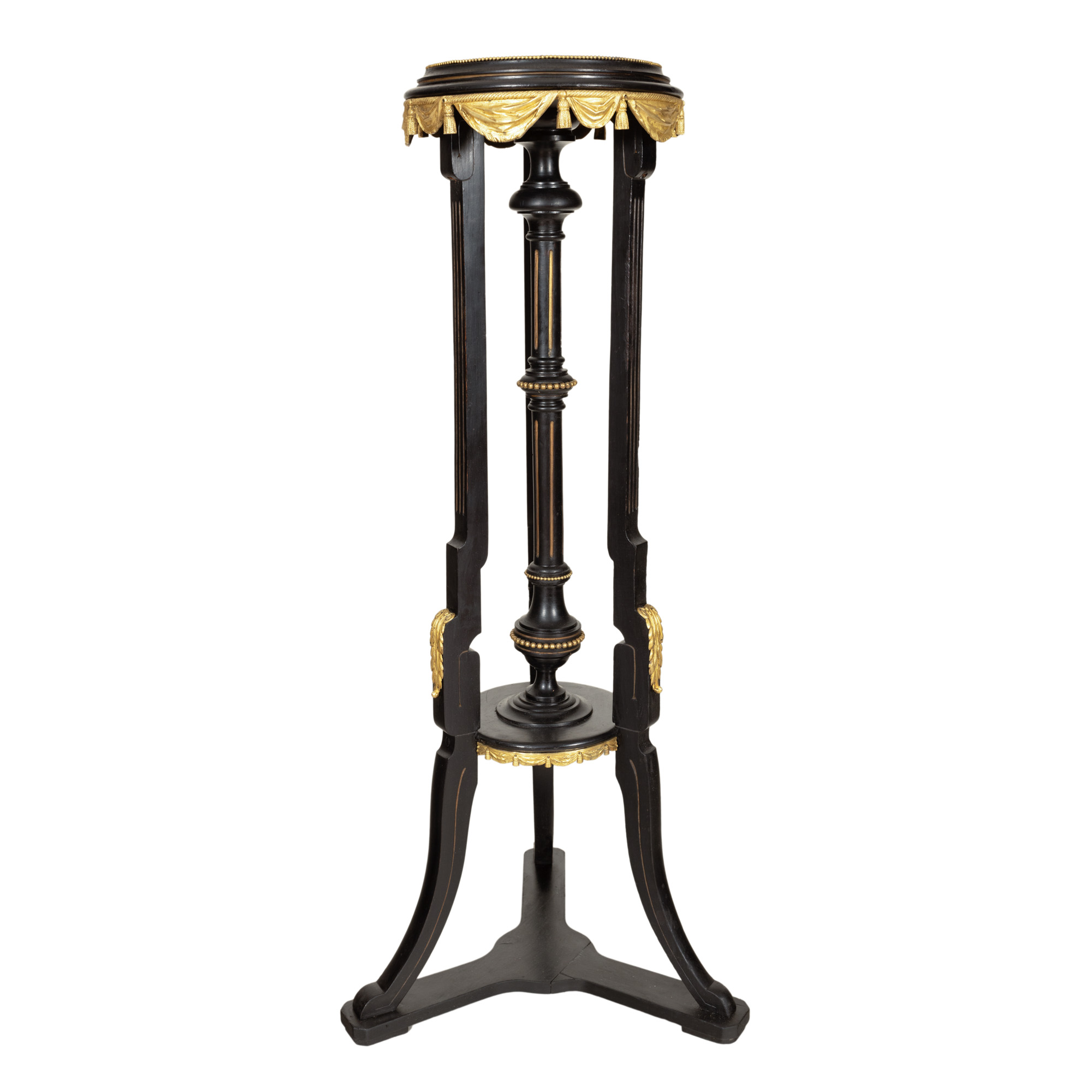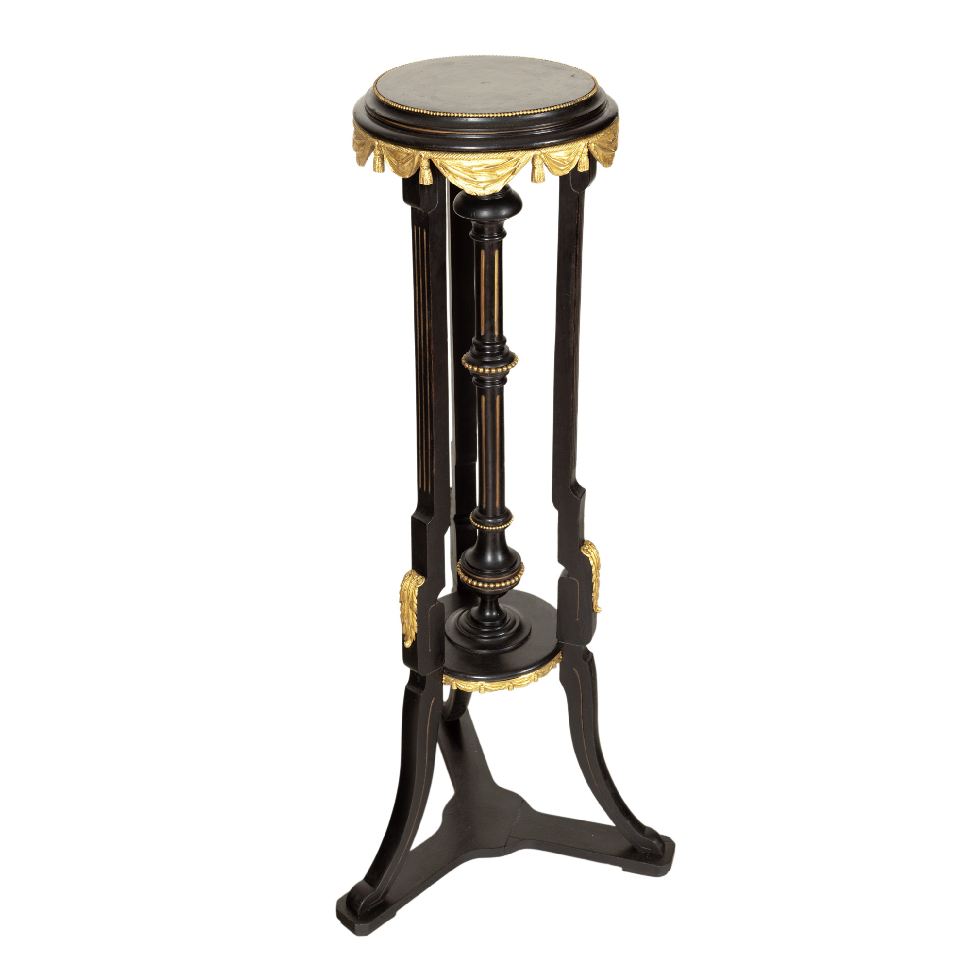 109. Piedestal Napoleon III, din lemn ebenizat cu ornamente bronz aurit, începutul sec. XX