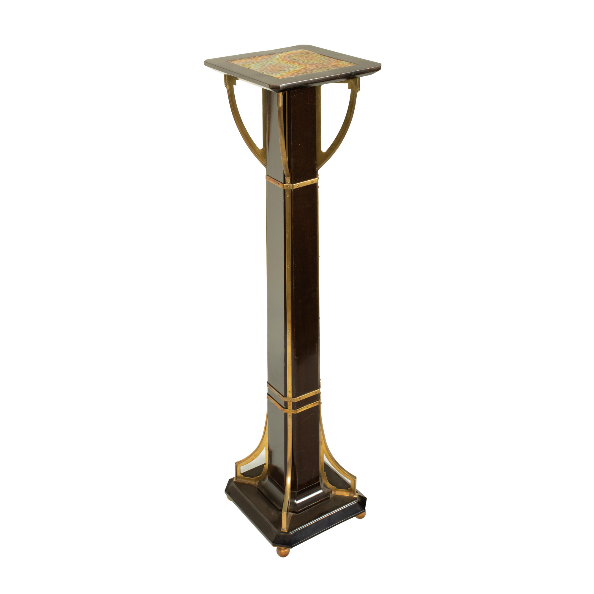 4. Rară pereche de piedestale Sezession, din lemn ebenizat și alamă martelată, cca. 1900