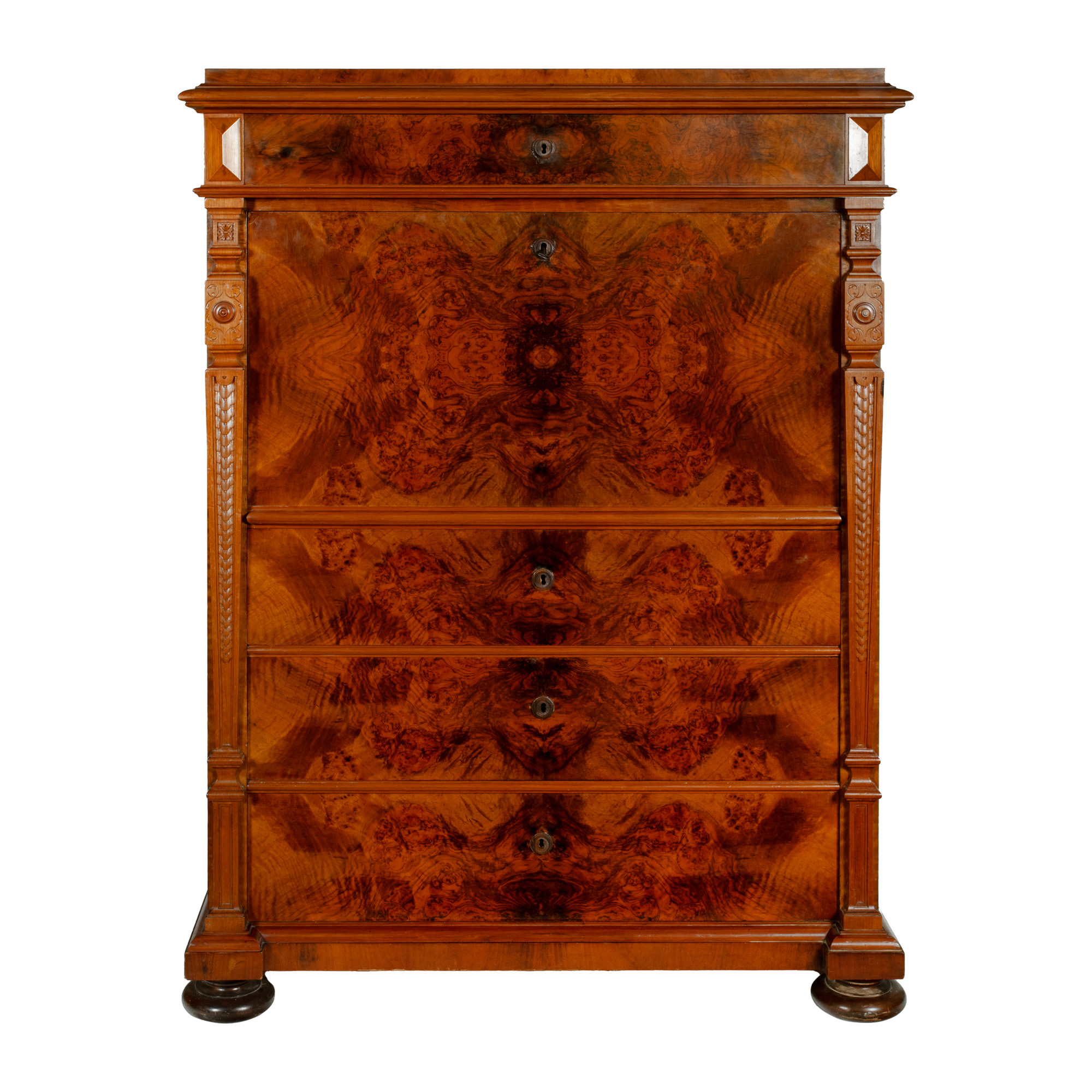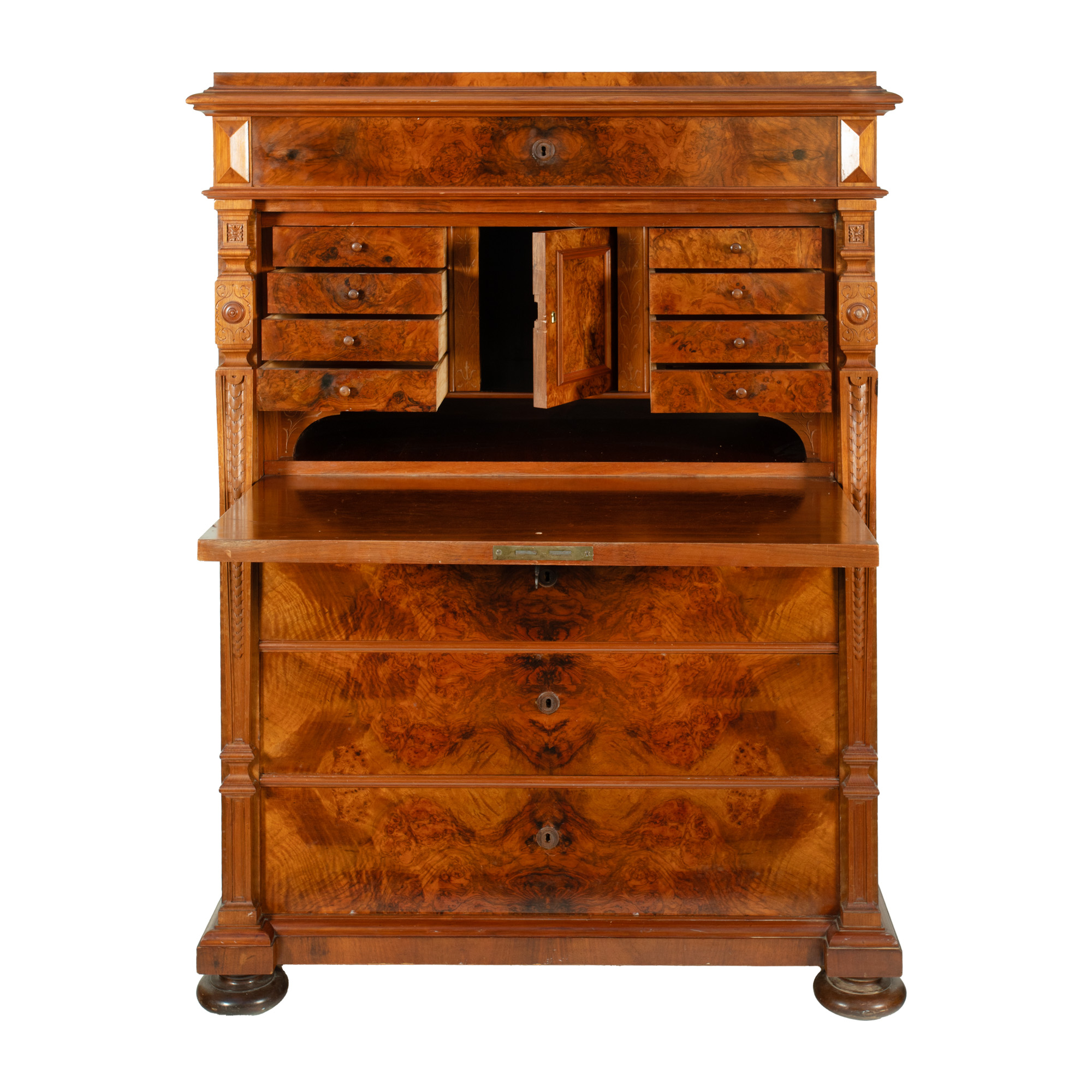 43. Secretaire Historist din lemn de rădăcină de nuc, prima jumătate a sec. XX