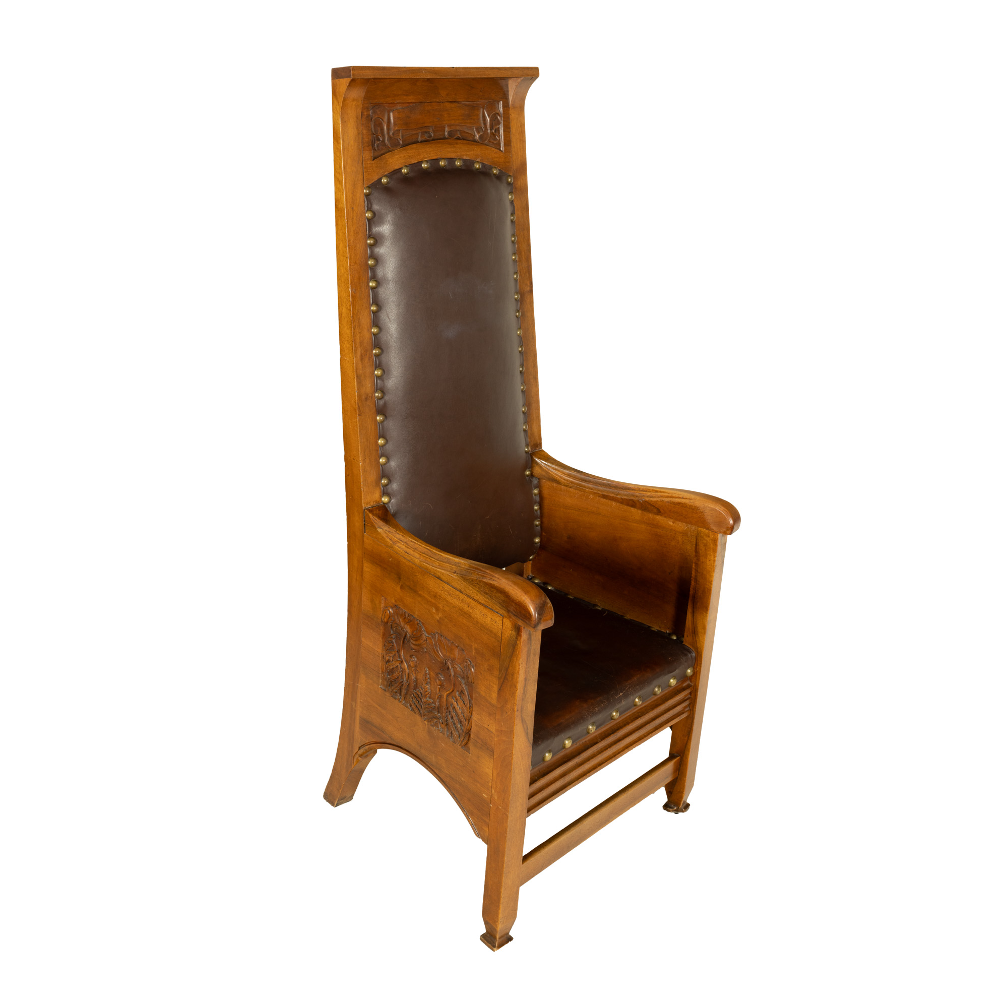 lemn de stejar, sculptat, bronz patinat, piele naturală