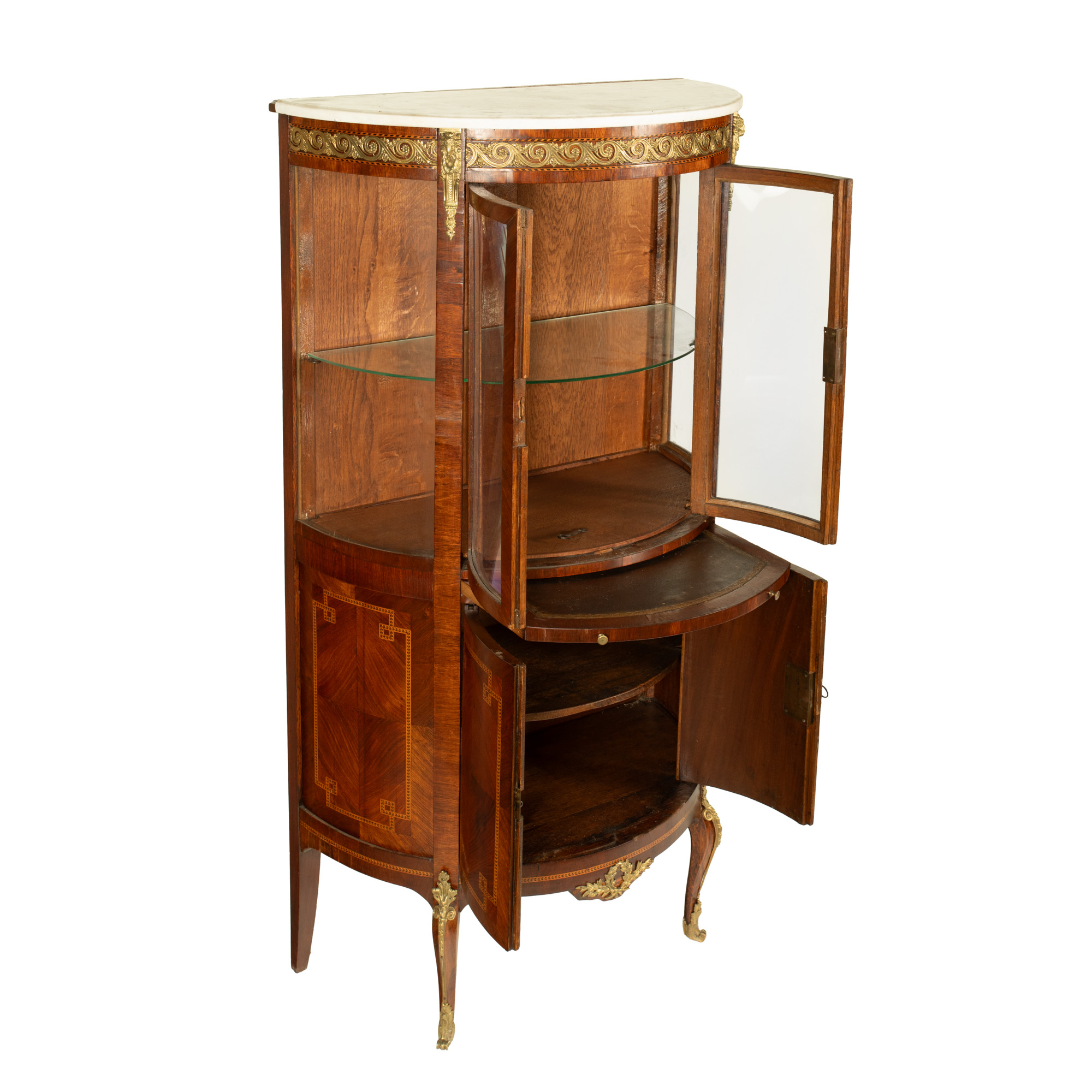 85. Vitrină în manieră Neo-Clasică, ornată cu decor geometric marchetat și elemente din bronz aurit, cca. 1900