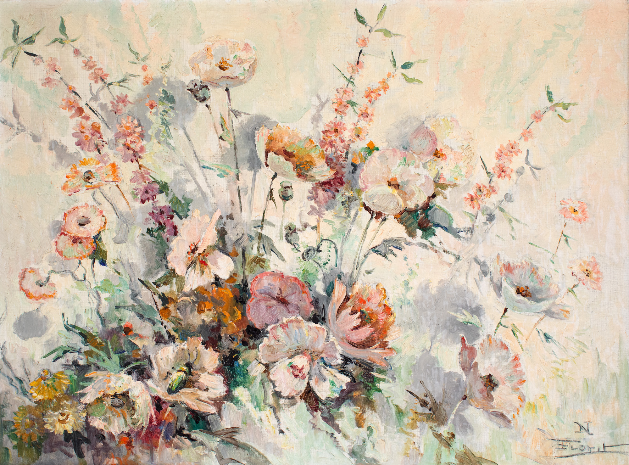 semnat dreapta jos, cu negru, ”N. Florit”