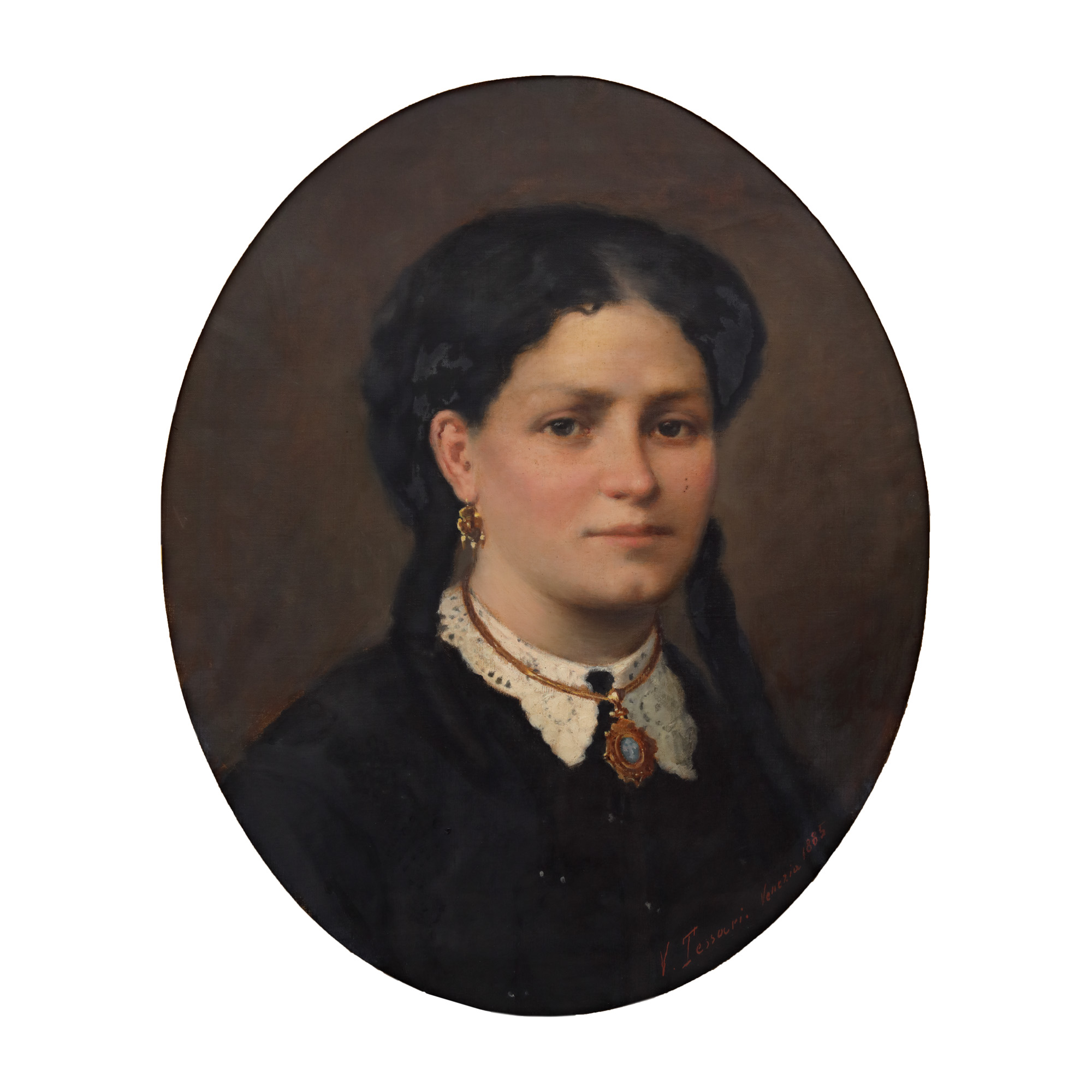 semnat, localizat și datat dreapta jos, cu roșu, "V. Tessari, Venezia, 1885"