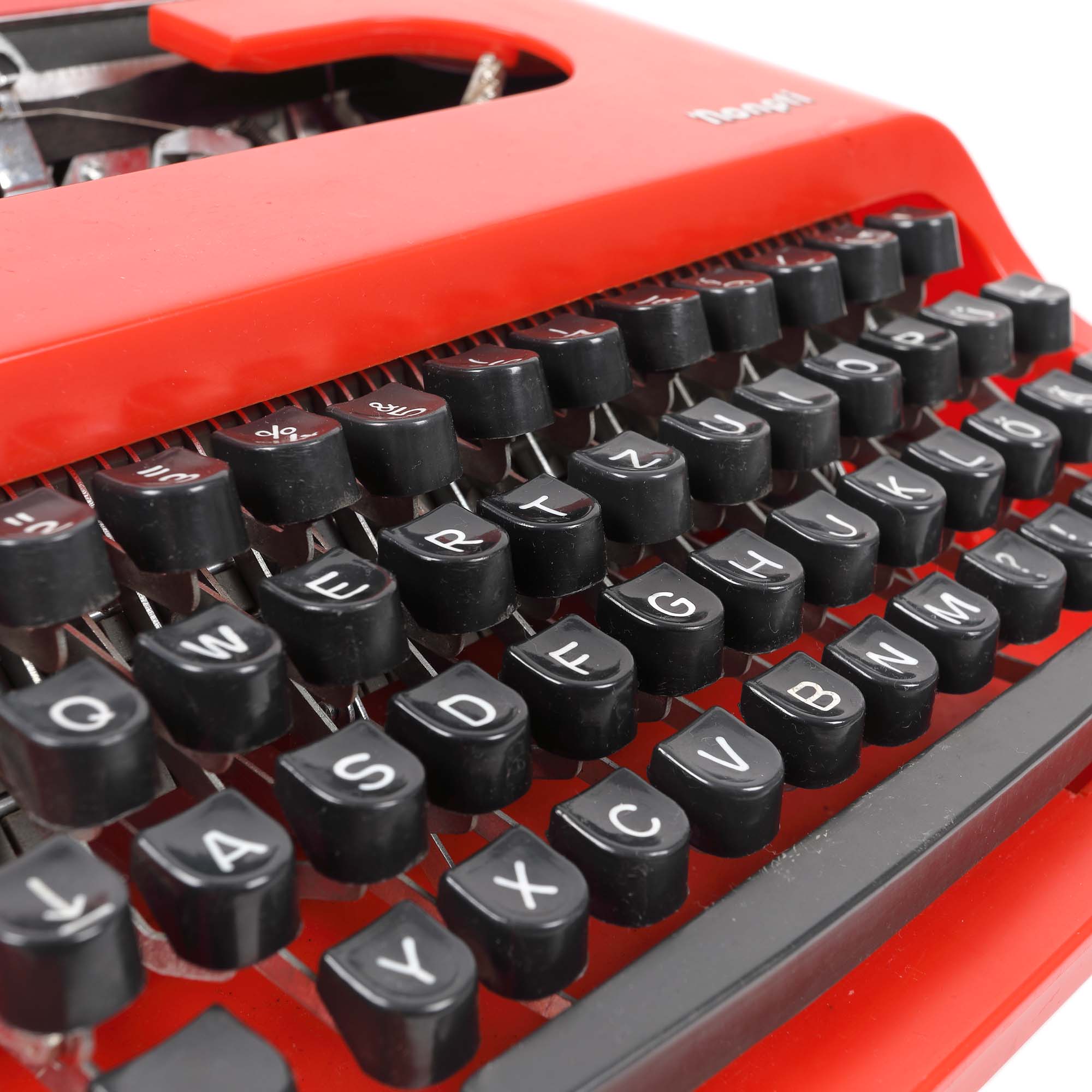82. Mașină de scris Monpti, design Stefan Lengyel, Cehoslovacia, în cutia originală [cca. 1968]