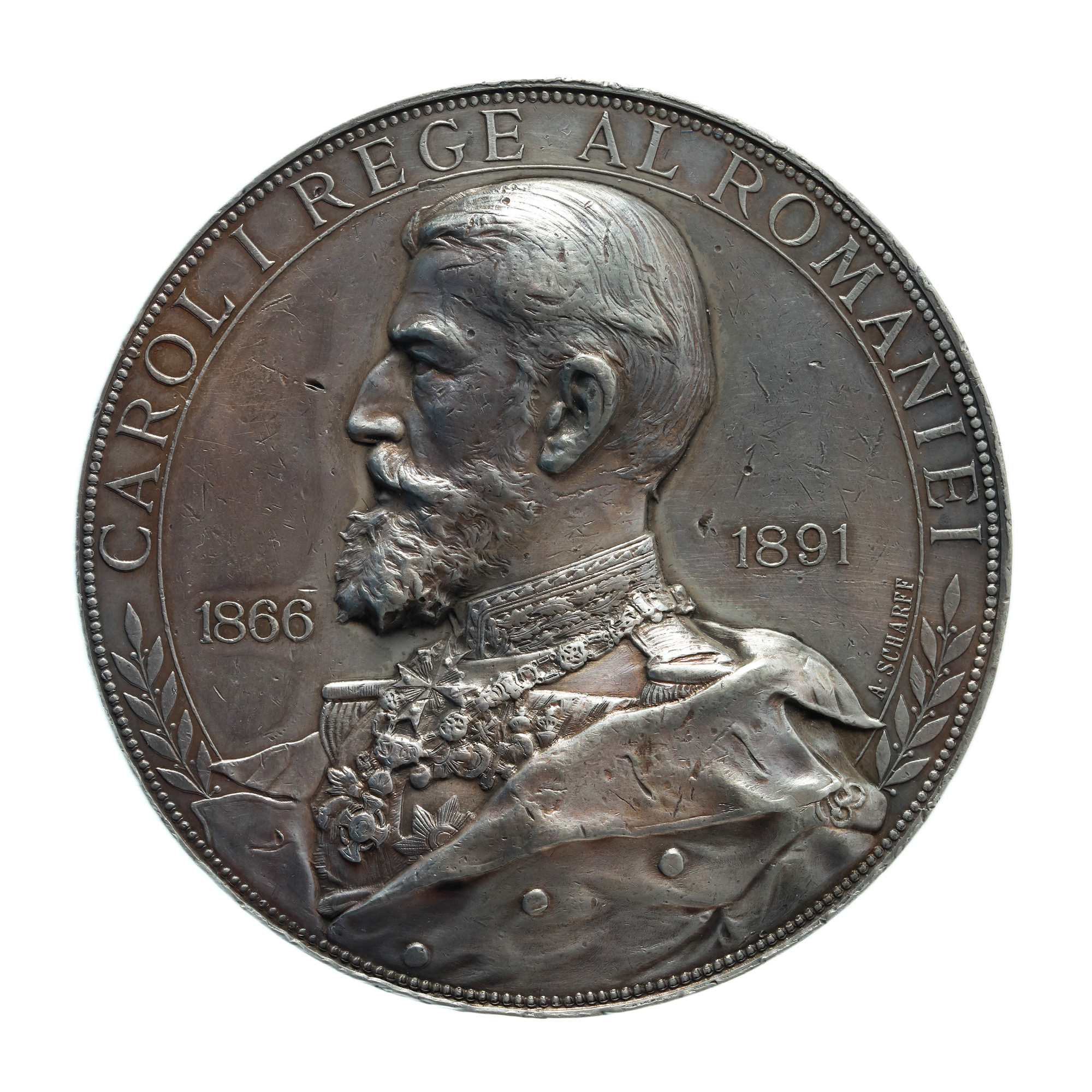 51. Medalia "25 de ani de domnie ai Regelui Carol I", gravor Anton Scharff, argint, 1891