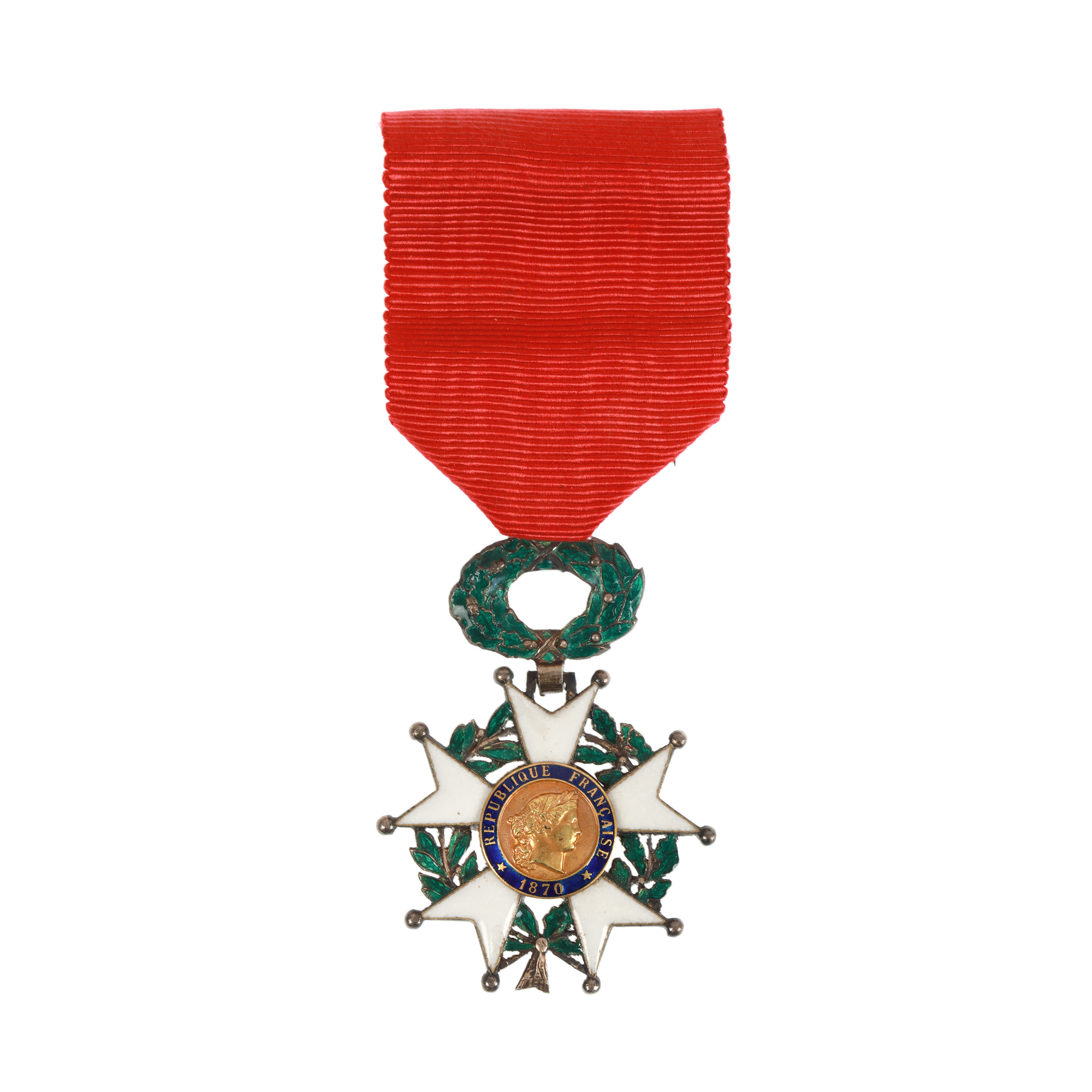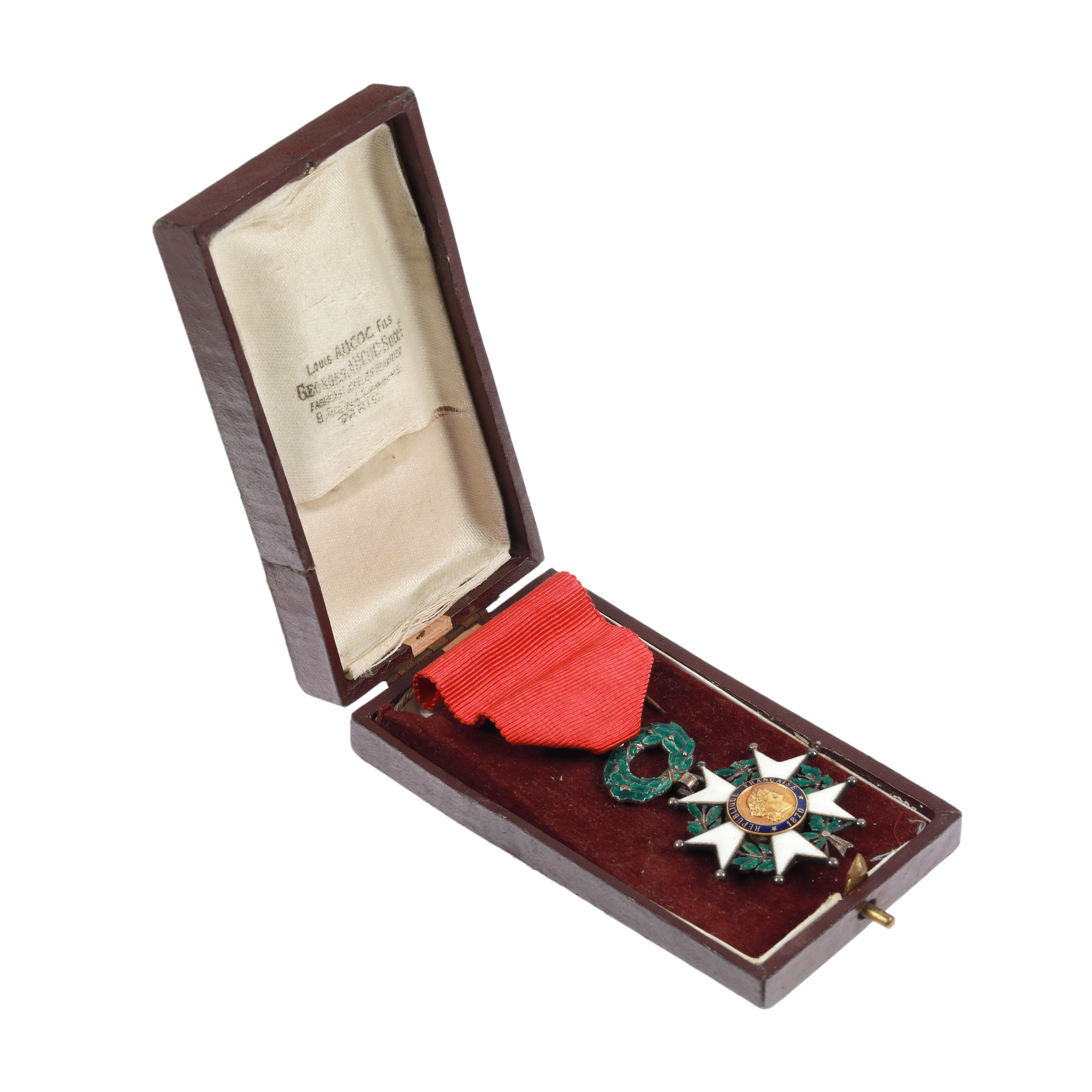 15. Ordinul "Legiunea de Onoare", cavaler, argint aurit și emailat, în cutia originală, alături de brevetul ei acordat lui Ioan Ursu, profesor la Universitatea din Cluj, 1922