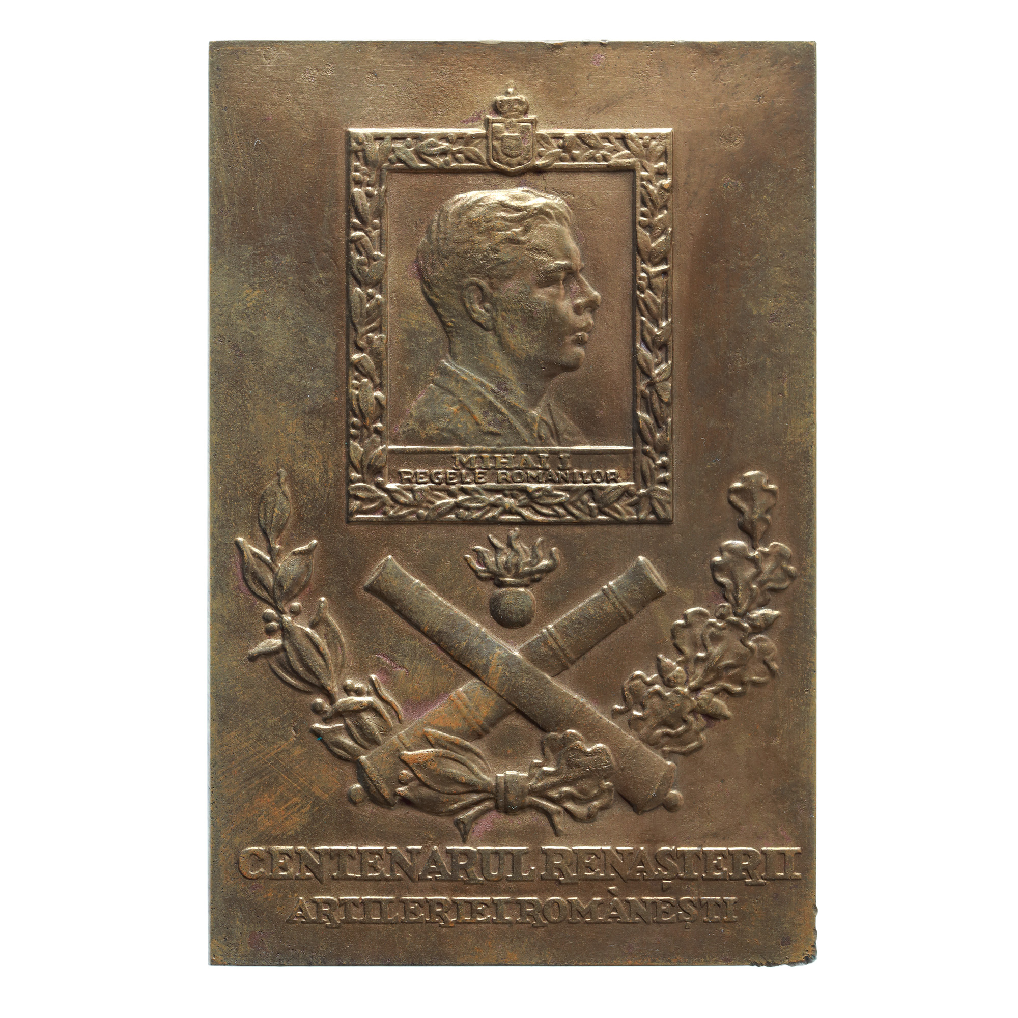 45. Placheta "Centenarul Renașterii Artileriei Românești", manufactura Monetăriei Naționale, 1943