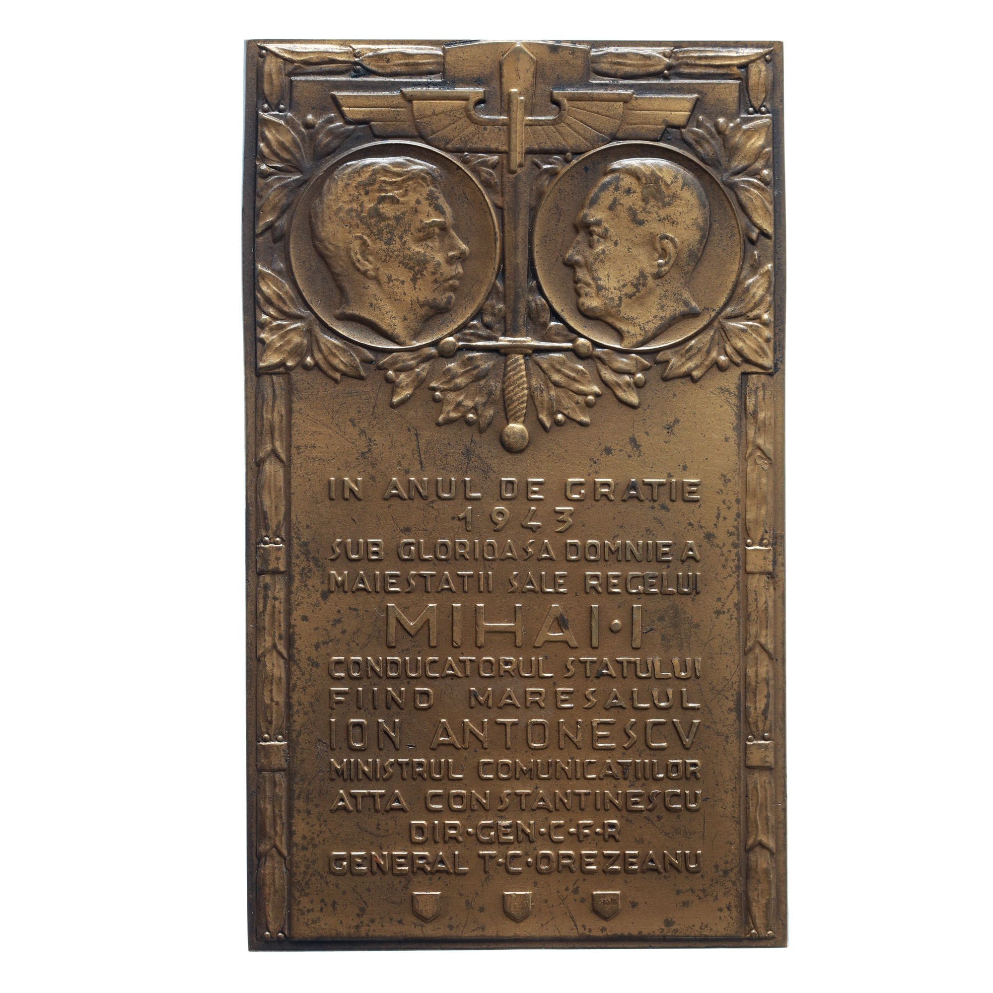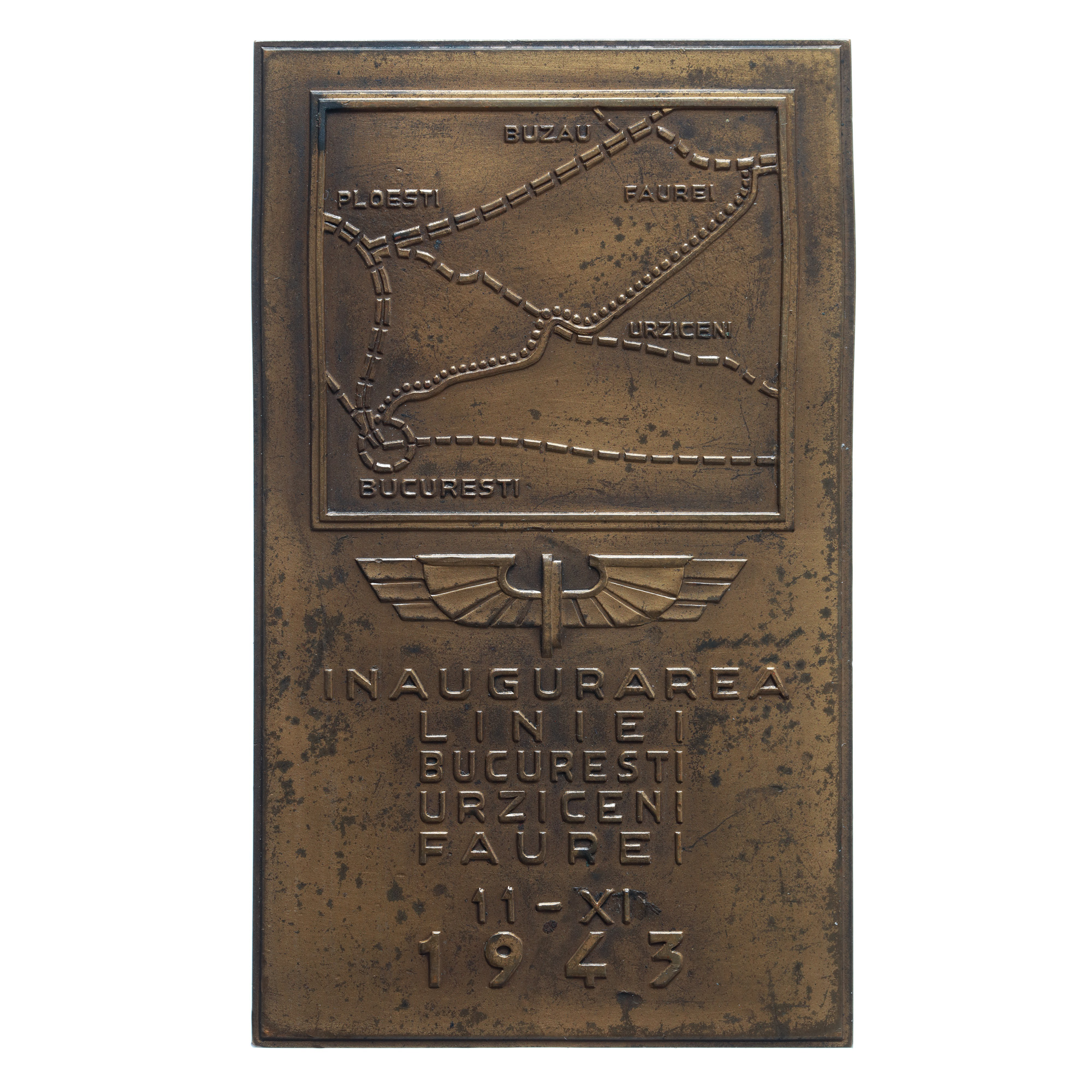 58. Placheta "Inaugurarea căii ferate București-Făurei-Urziceni", manufactură Monetărie Națională, 1943