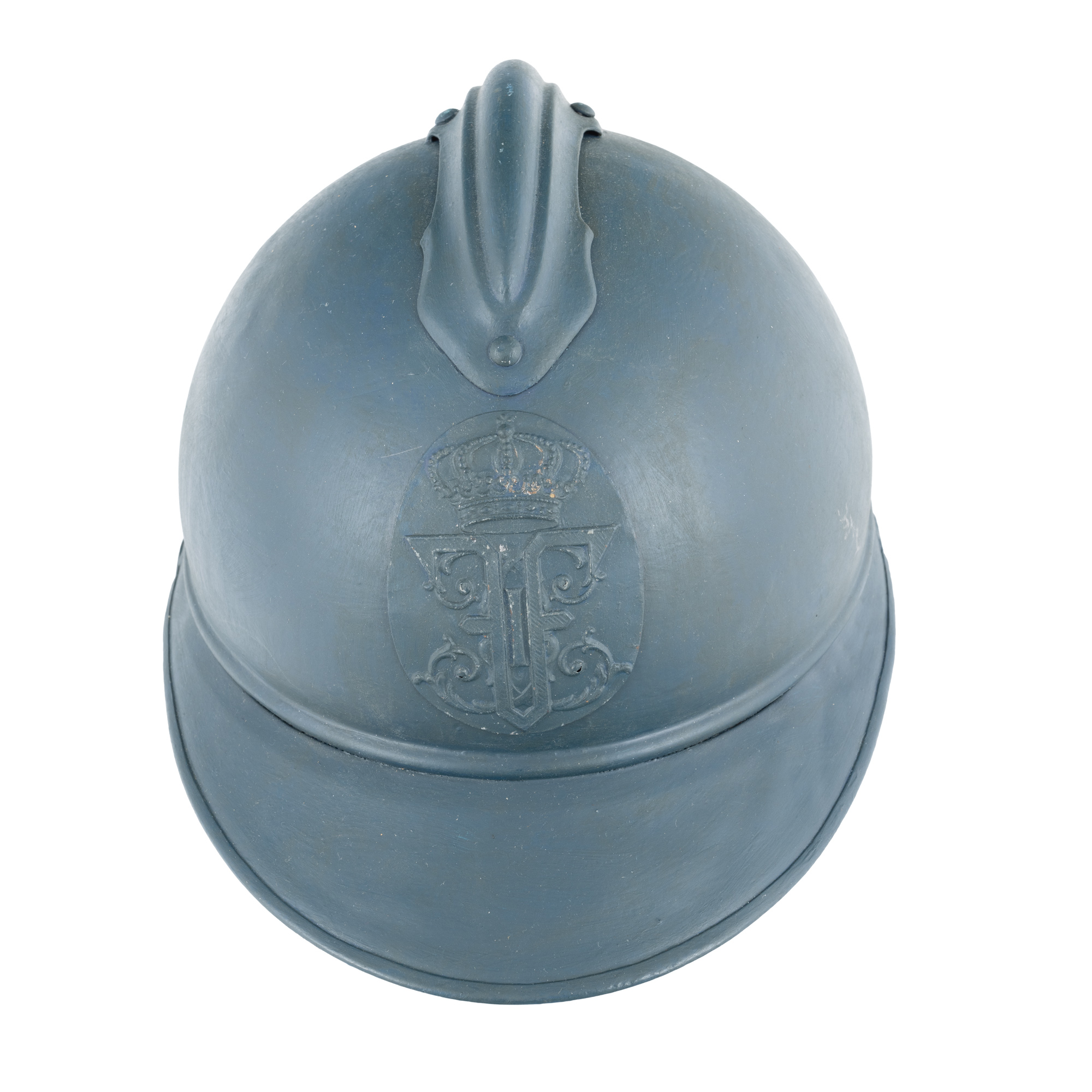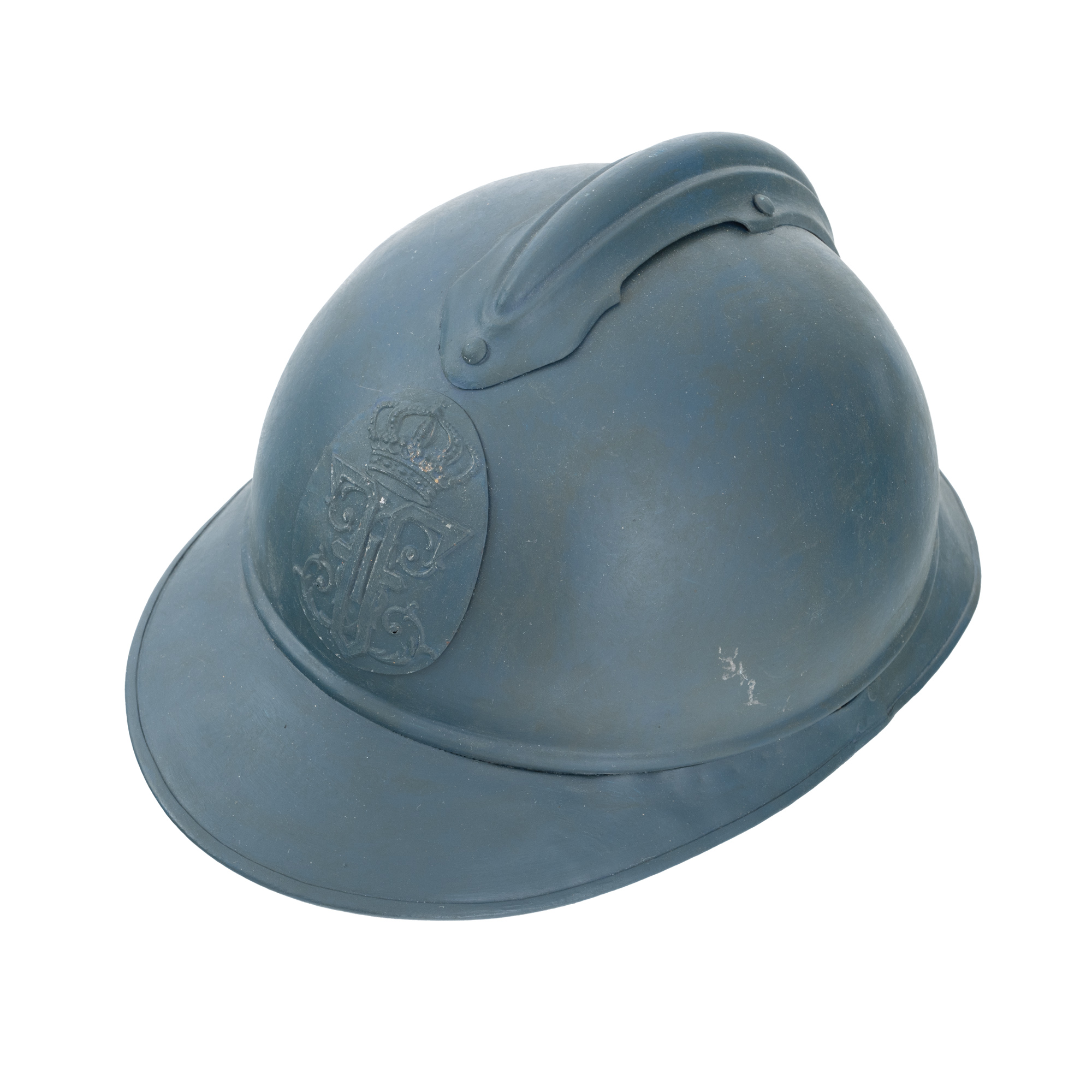 72. Cască militară românească, model Adrian, cu cifrul regelui Ferdinand, cca. 1917-1919, folosită în Primul Război Mondial