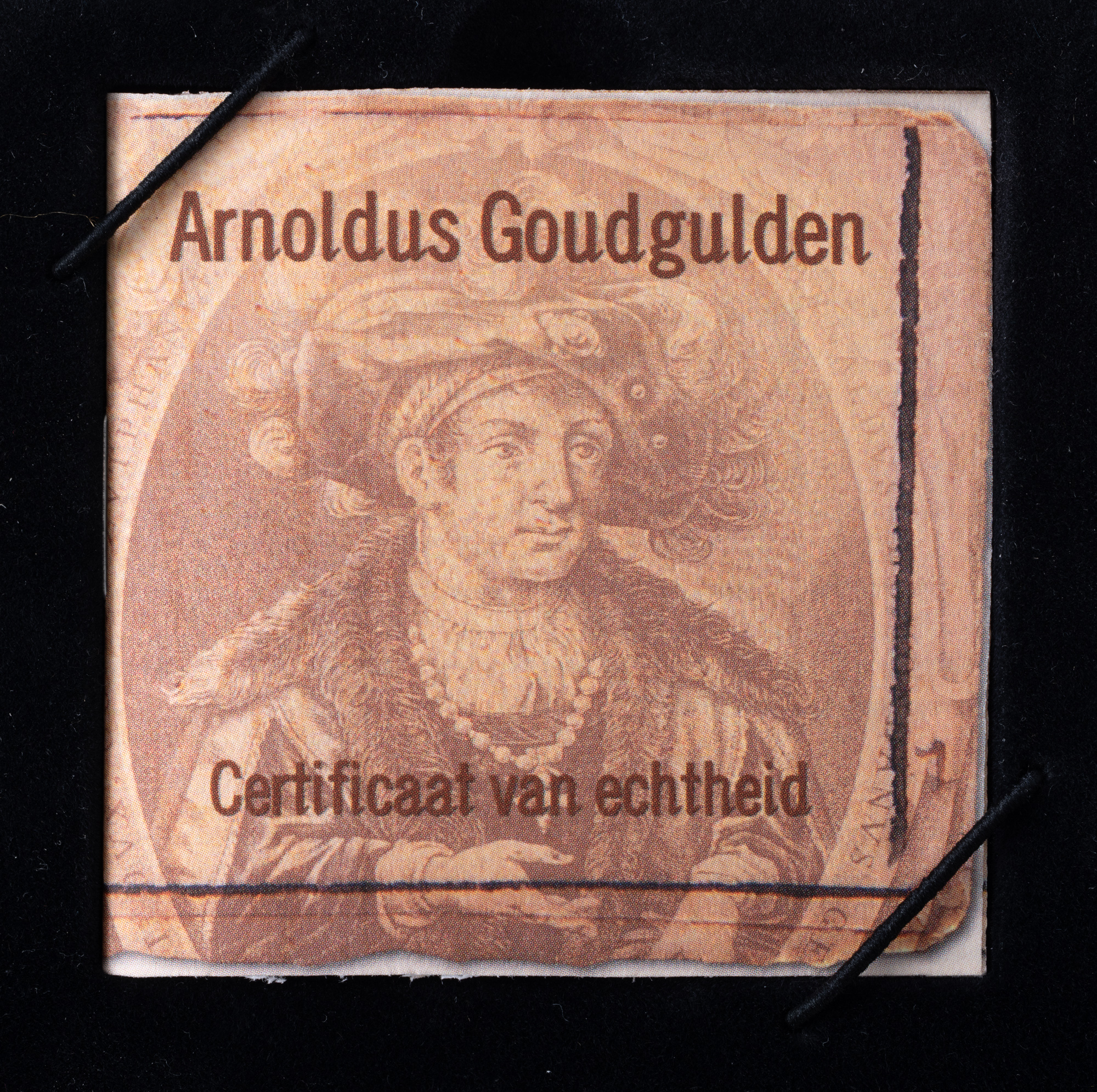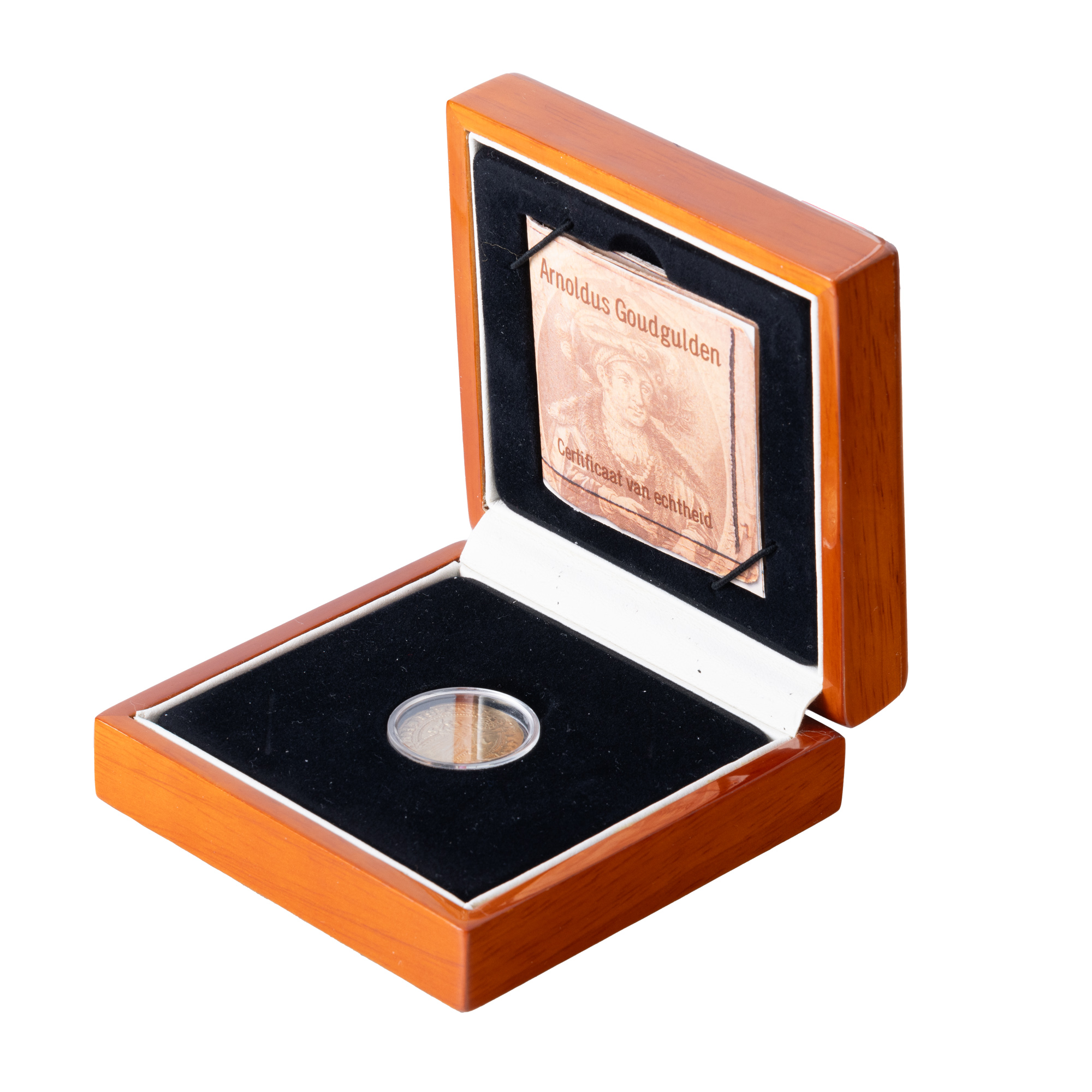 23C. Monedă Gulden Arnoldus, Țările de Jos, provincia Gelderland, cca. 1450, aur, însoțită de cutie și certificatul emis de Monetăria Regală Olandeză