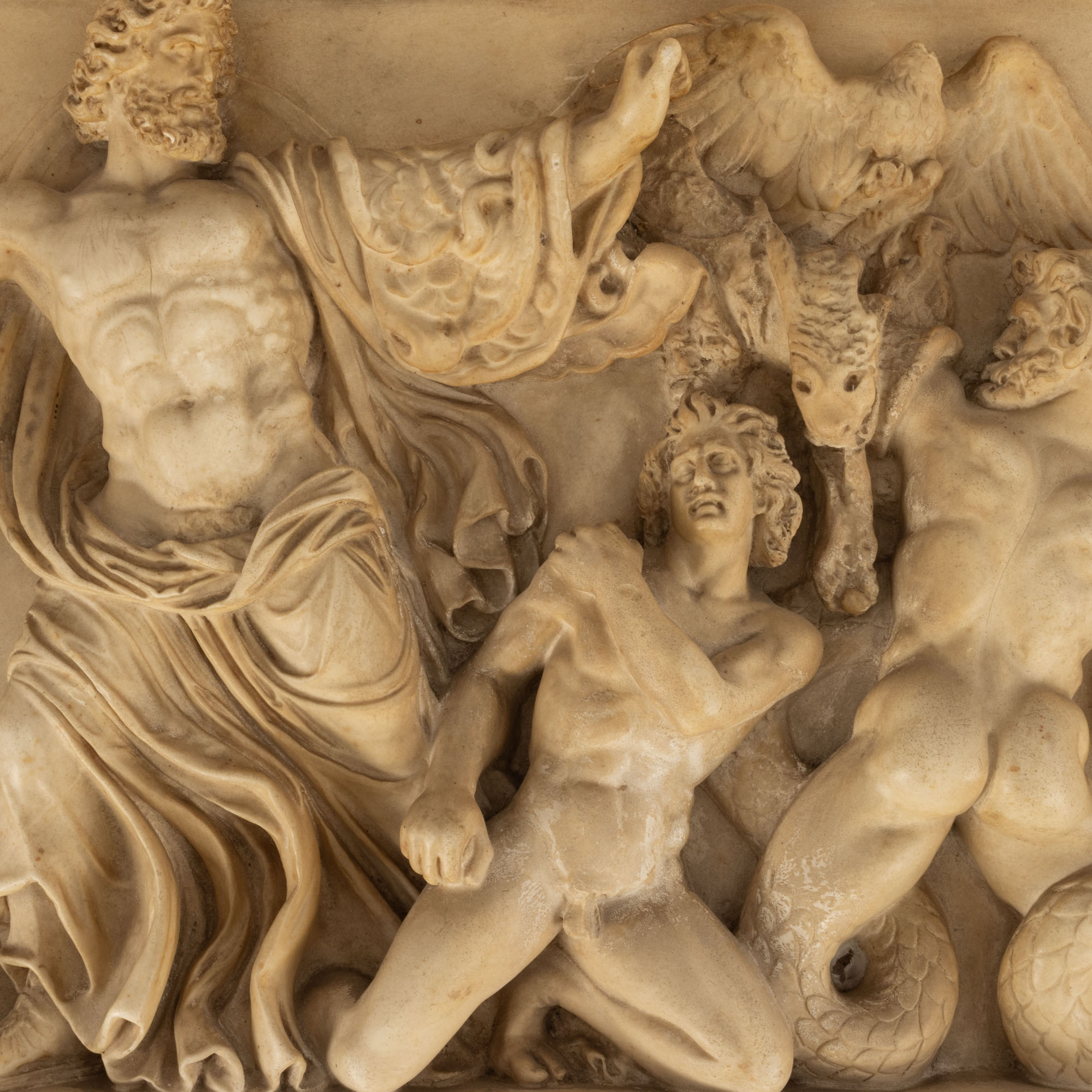 2. ”Bătălia dintre Zeus și Giganți”, basorelief, după friza Templului din Pergamon, provine din colecția inginerului Ion D. Ghica, începutul sec. XX