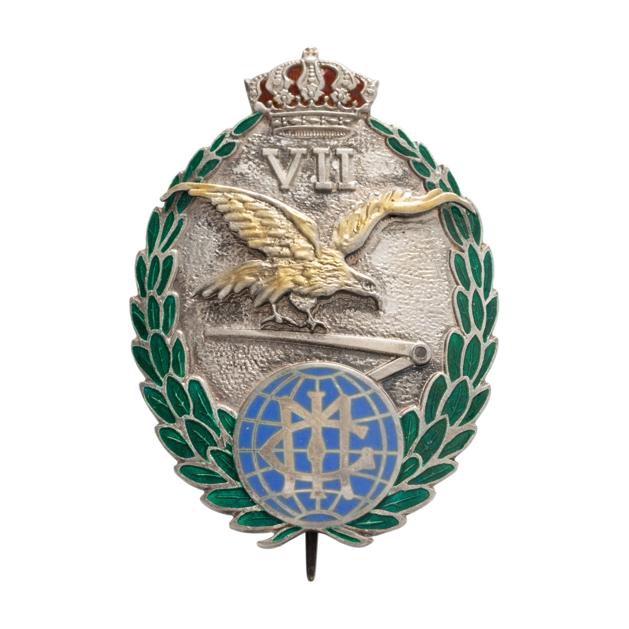 75. Insignă, 7 ani de serviciu, pentru ofițeri, Institutul Geografic Militar, perioada interbelică, argint