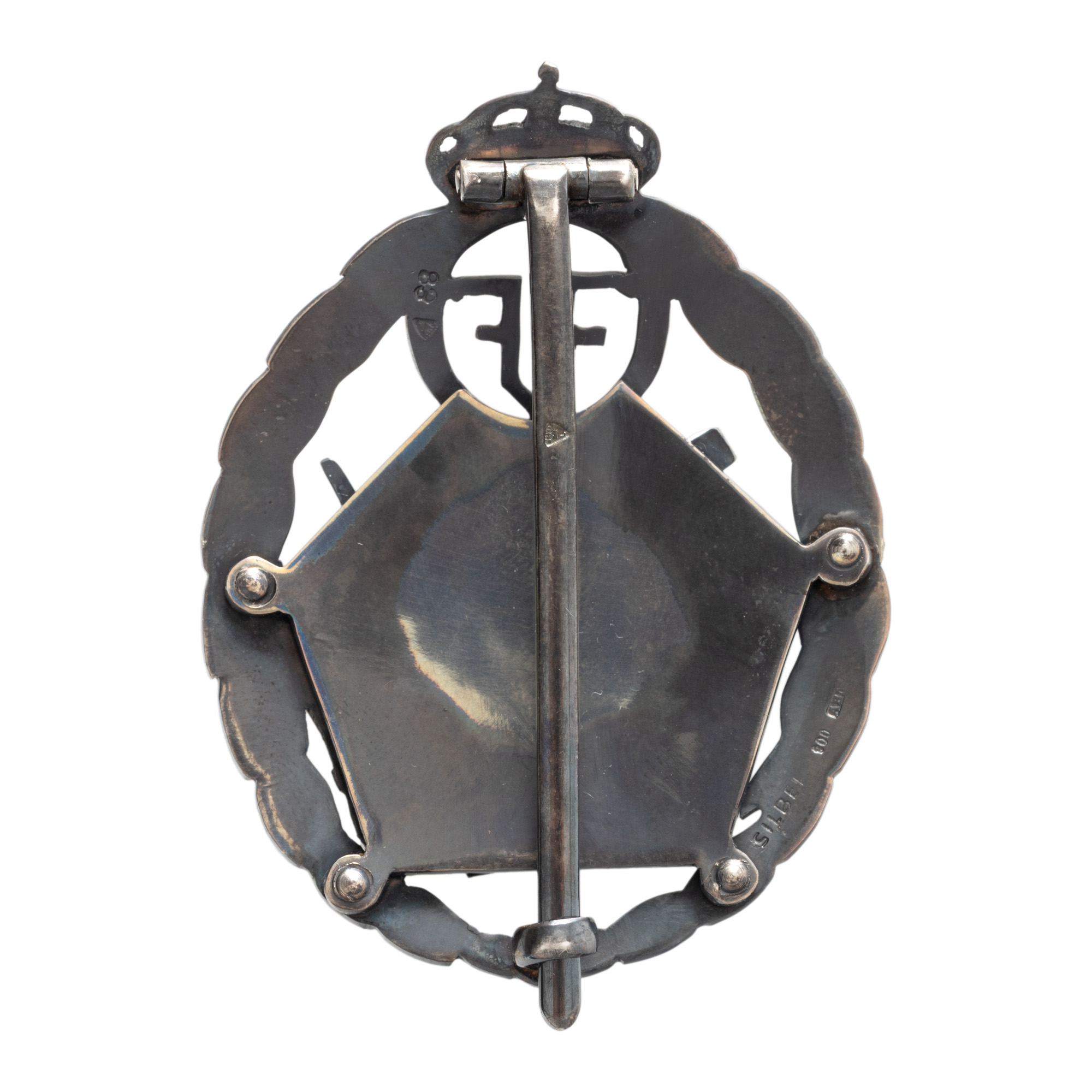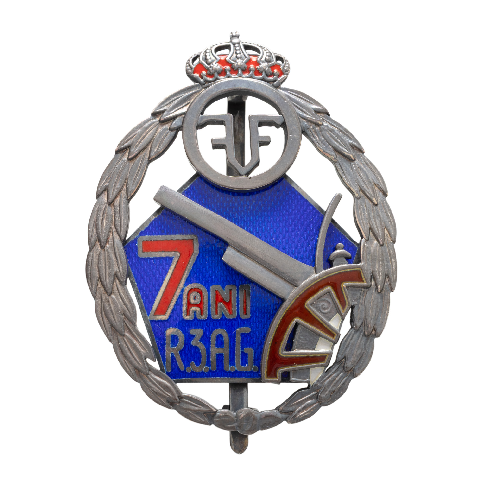 69. Insignă, 7 ani de serviciu, pentru ofițeri, Regimentul 3 Artilerie Grea, perioada interbelică, argint
