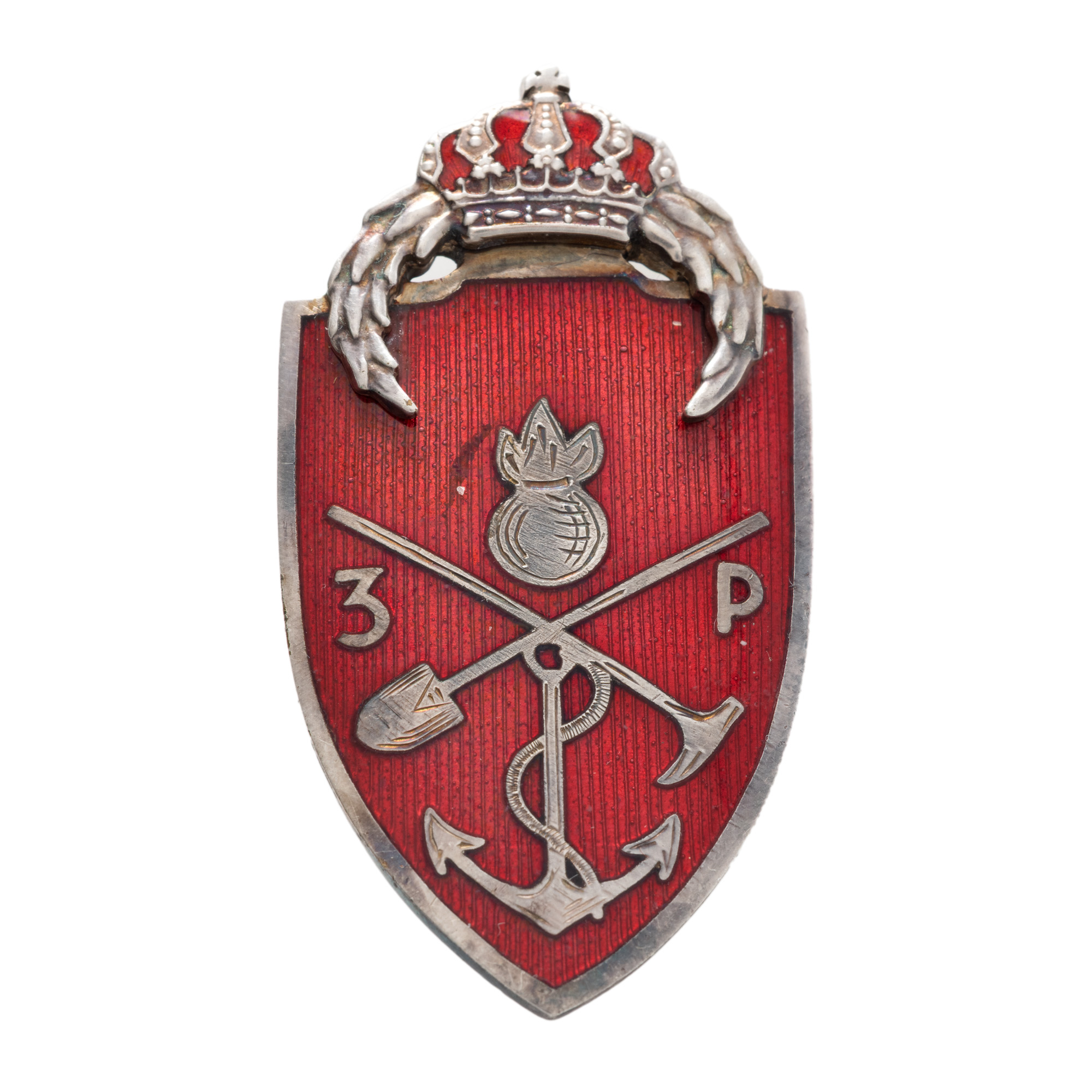 74. Insignă, 7 ani de serviciu, pentru ofițeri, Regimentul 3 Pontonieri, perioada interbelică, argint