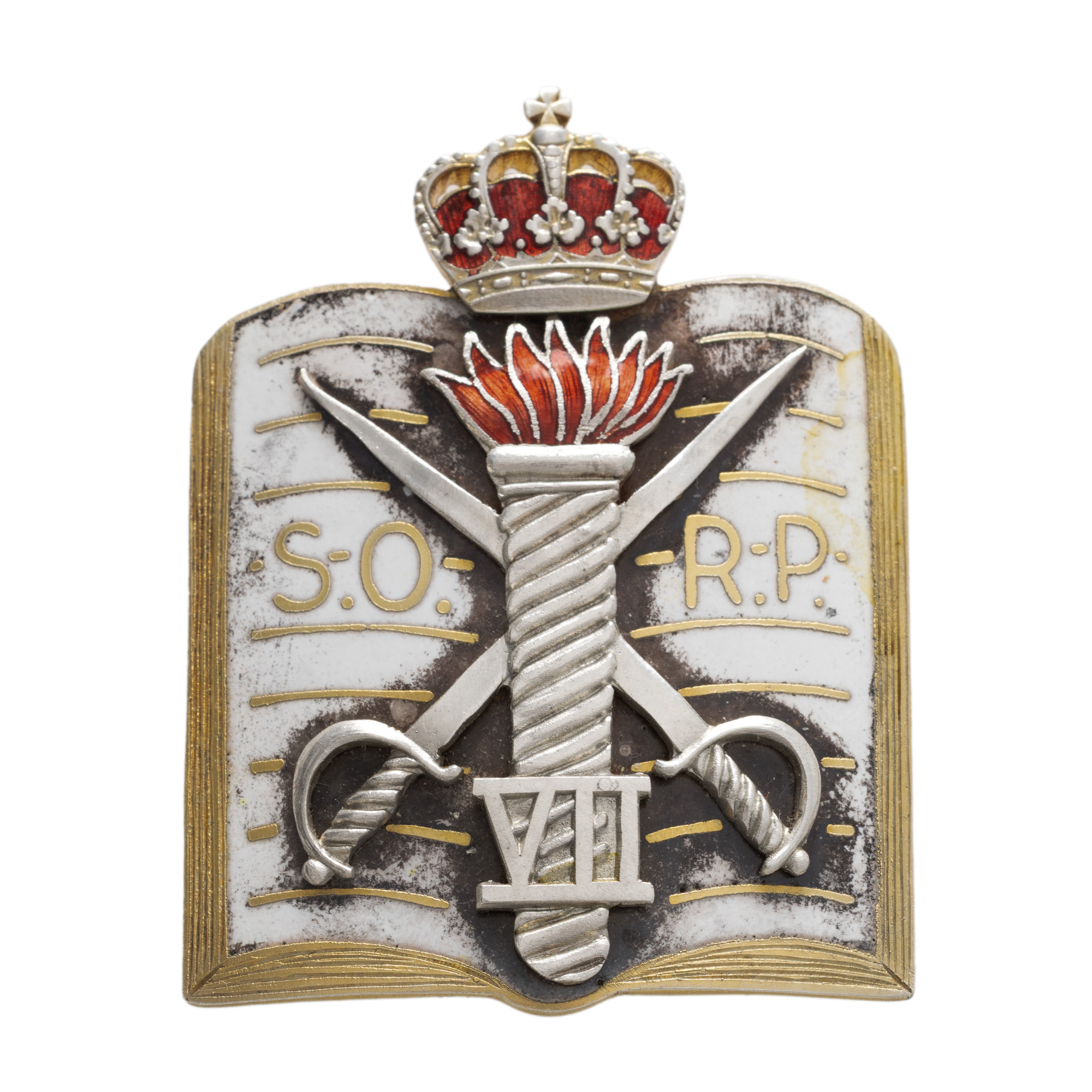 67. Insignă, 7 ani de serviciu, pentru ofițeri, Școala de Ofițeri de Rezervă Ploiești, perioada interbelică, argint