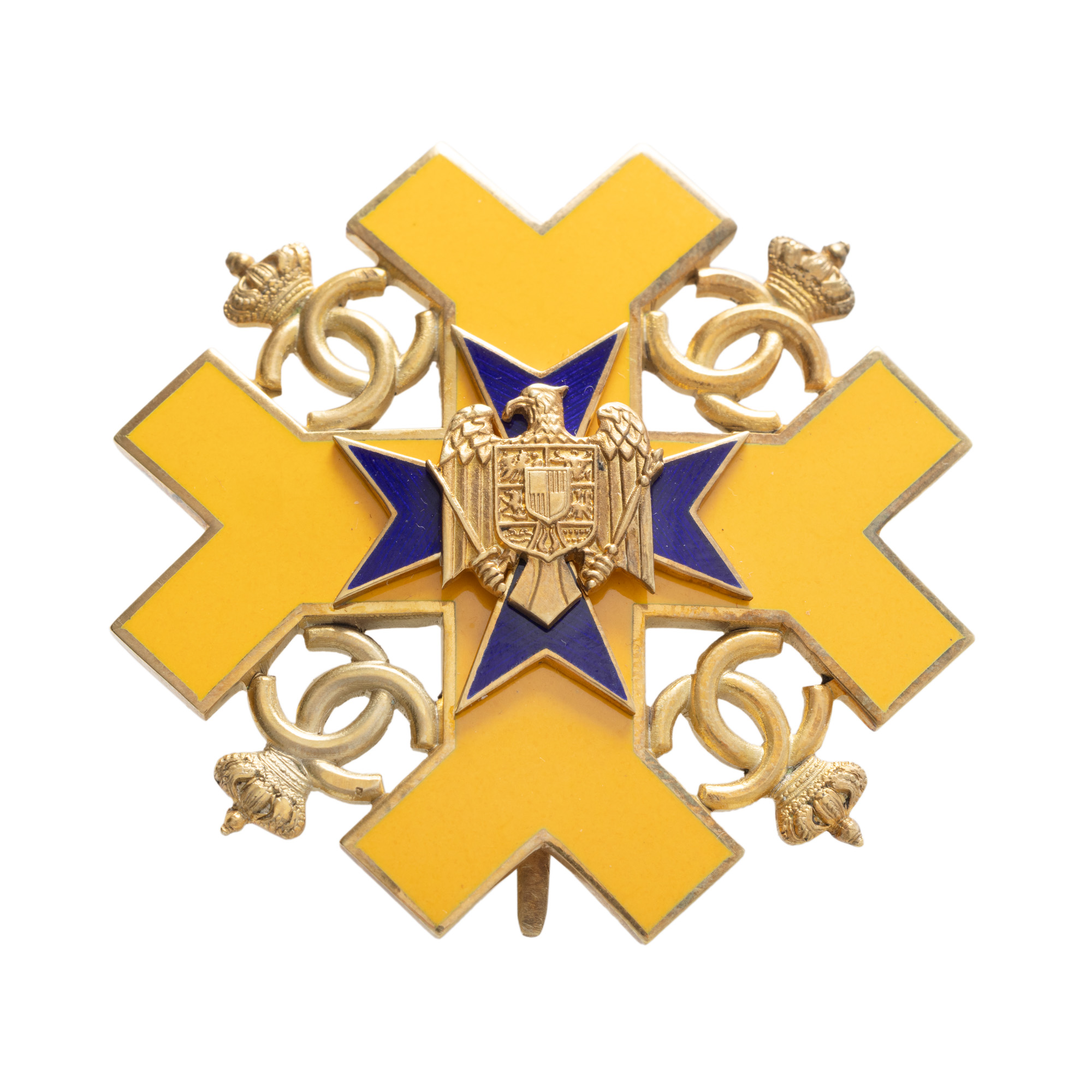 61. Insignă ”Meritul Străjeresc”, clasa I, perioada regelui Carol II, argint aurit, piesă deosebit de rară
