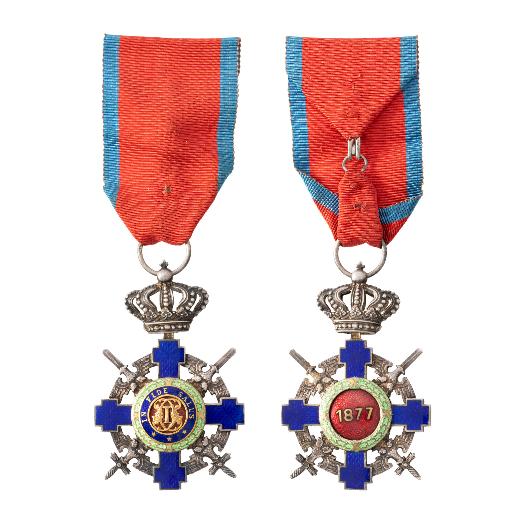 54. Ordinul "Steaua României", în grad de Cavaler, pe timp de război, cu panglică de Virtute Militară, perioada celui de-al Doilea Război Mondial, argint