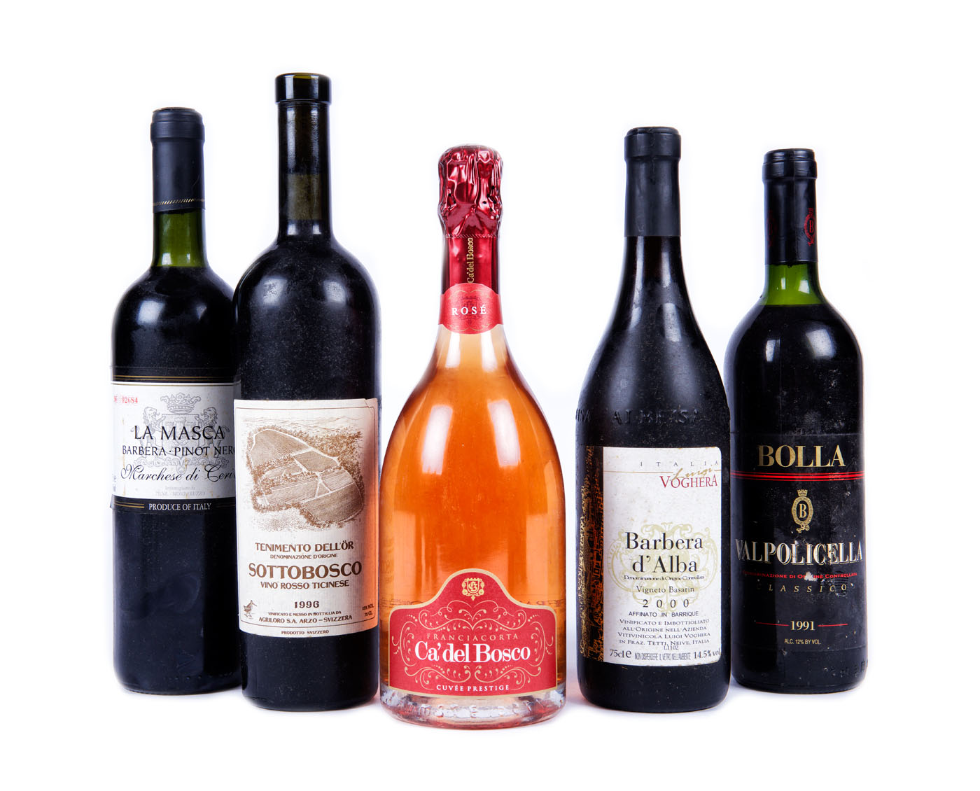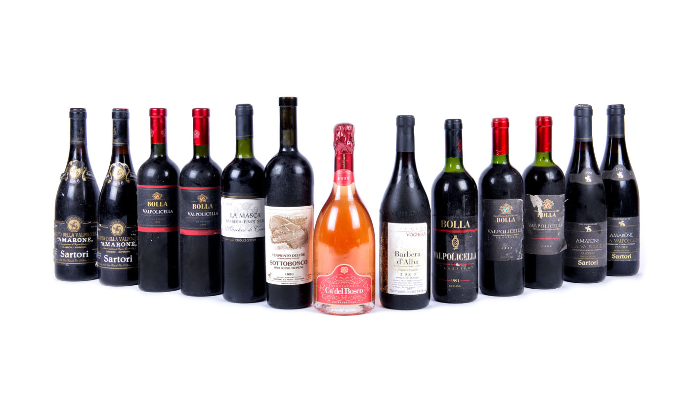 1 x Bolla Valpolicella Classico, Valpolicella, 1993, 75cl 1 x Bolla Valpolicella Classico, Valpolicella, 1996, 75cl 1 x Bolla Valpolicella Classico, Valpolicella, 1991, 75cl 2 x Bolla Valpolicella Classico, Valpolicella, 1999, 75cl 1 x Voghera Barbera d’Alba Vigneto Basarin, Piemonte, 2000, 75cl 2 x Sartori Amarone della Valpolicella, Valpolicella, 1986, 75cl 1 x Sartori Amarone della Valpolicella, Valpolicella, 1989, 75cl 1 x Ca del Bosco Cuvée Prestige Rose, Franciacorta, -, 75cl 1 x Sartori Amarone Classico, Valpolicella, 1990, 75cl 1 x Sottobosco Tennimento dell’Or, Ticino, 1996, 75cl 1 x La Masca Barbera Pinot Nero Cerivo, Piemonte, 2004, 75cl