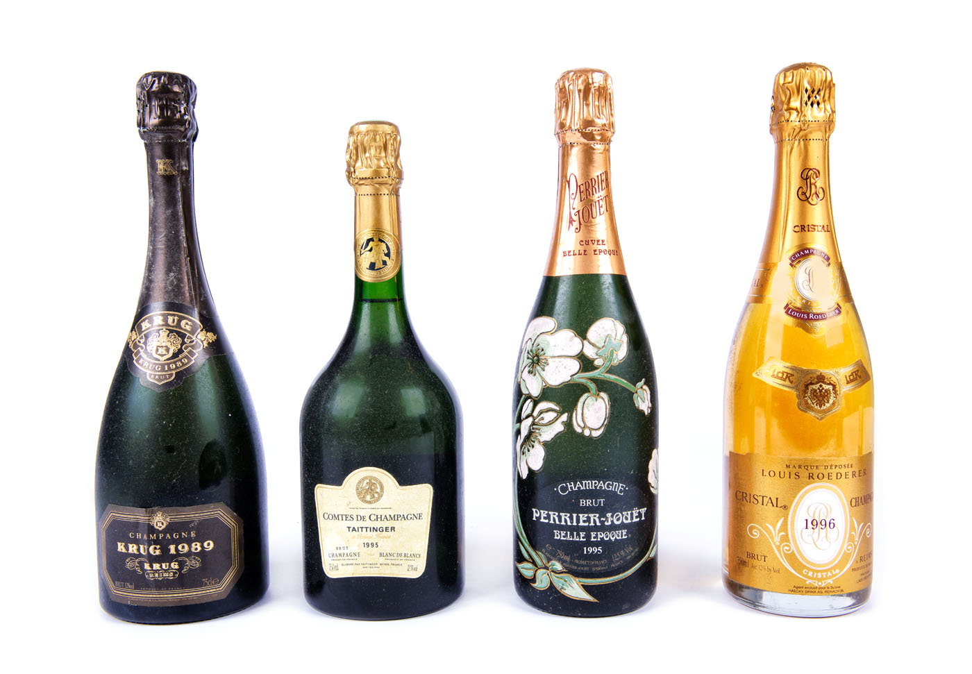 1 x G.H. Mumm Brut Rosé, Champagne, 1995, 75cl 1 x Dom Pérignon, Champagne, 2000, 75cl 1 x Dom Pérignon Oenothèque, Champagne, 1990, 75cl 1 x Dom Pérignon Oenothèque, Champagne, 1992, 75cl 1 x Moët & Chandon Brut Imperial, Champagne, -, 75cl 1 x Krug Vintage 1989, Champagne, 1989, 75cl 1 x Taittinger Comtes de Champagne, Champagne, 1995, 75cl 1 x Cristal Brut, Champagne, 1996, 75cl 1 x Perrier Jouët Belle Époque Brut, Champagne, 1995, 75cl