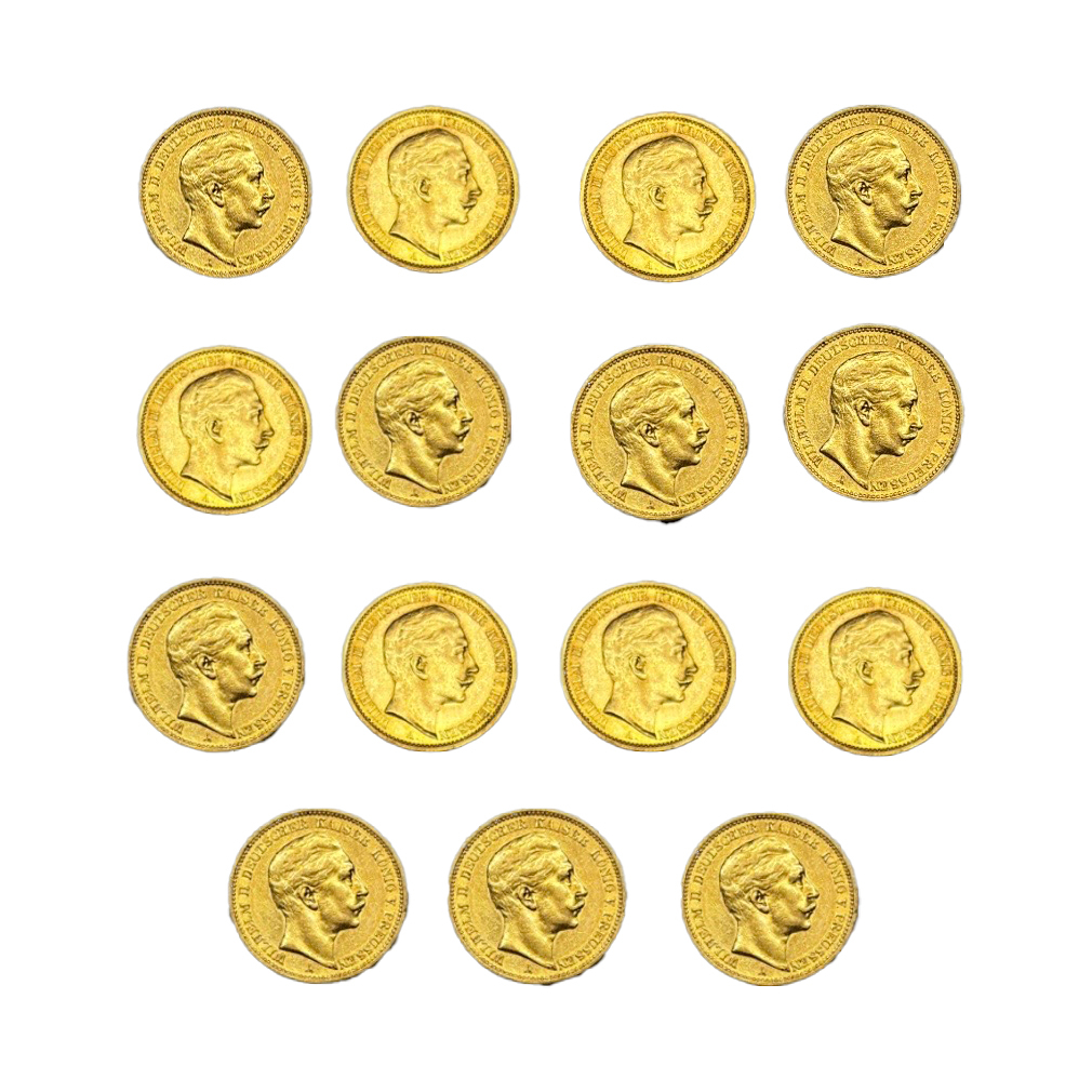 42. Lot format din 15 monede de 20 Mărci, aur, Germania