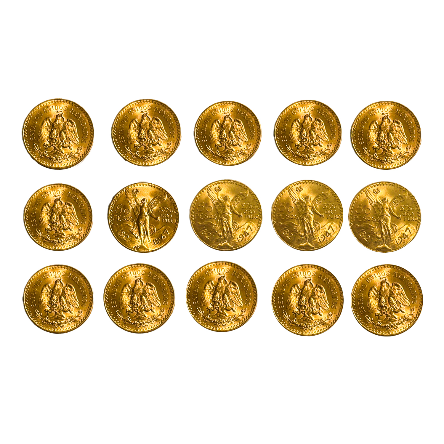 97. Lot format din 15 monede de 50 Pesos, aur, Mexic, 1947