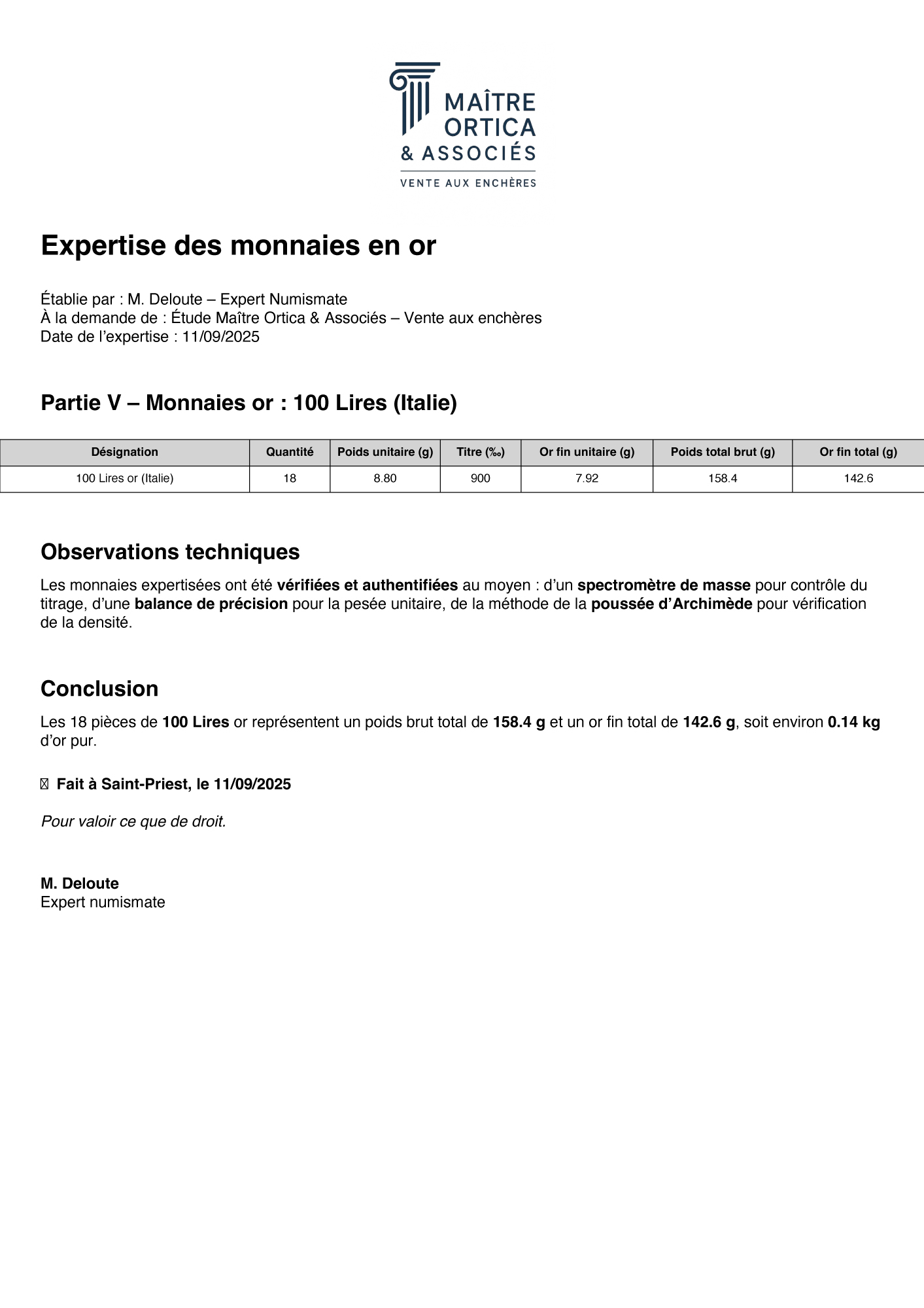 Lotul este însoțit de o expertiză actualizată, realizată de expertul numismat Frédéric Deloute.