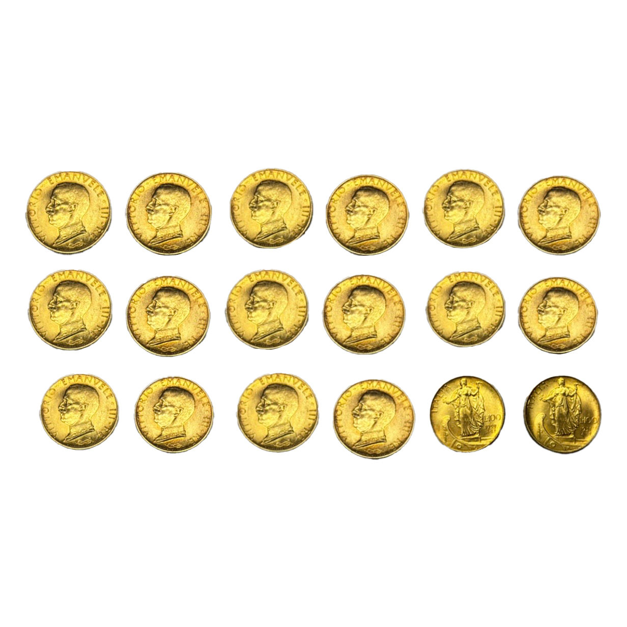59. Lot format din 18 monede de 100 Lire, aur, Italia