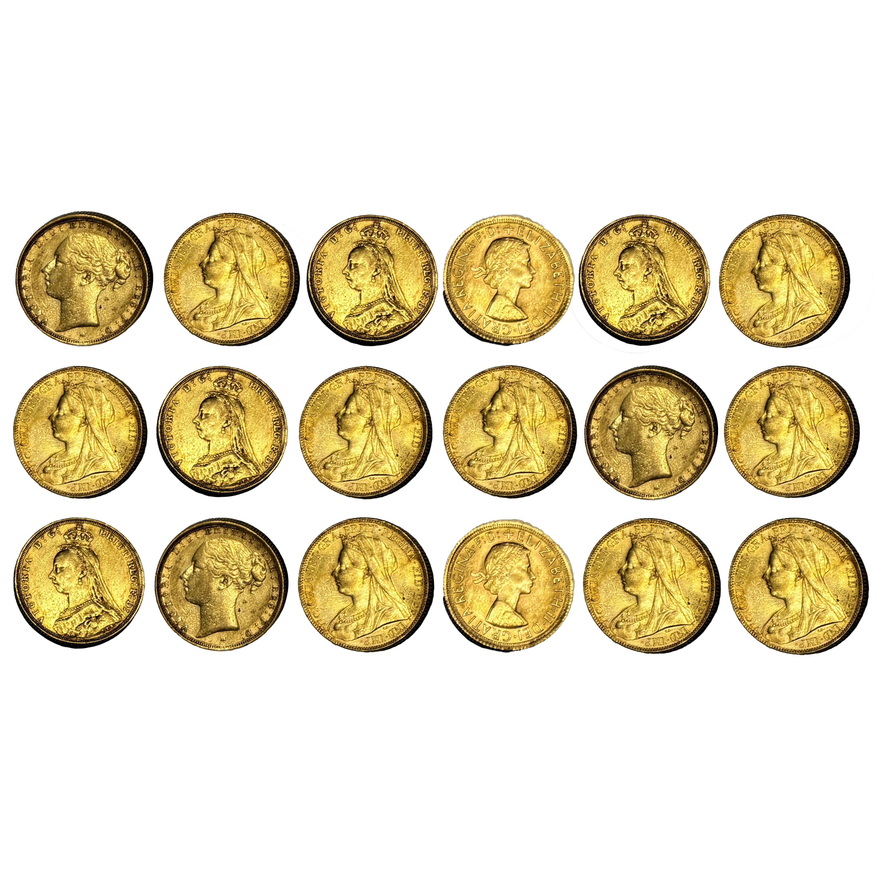 60. Lot format din 18 monede Sovereign, aur, Marea Britanie