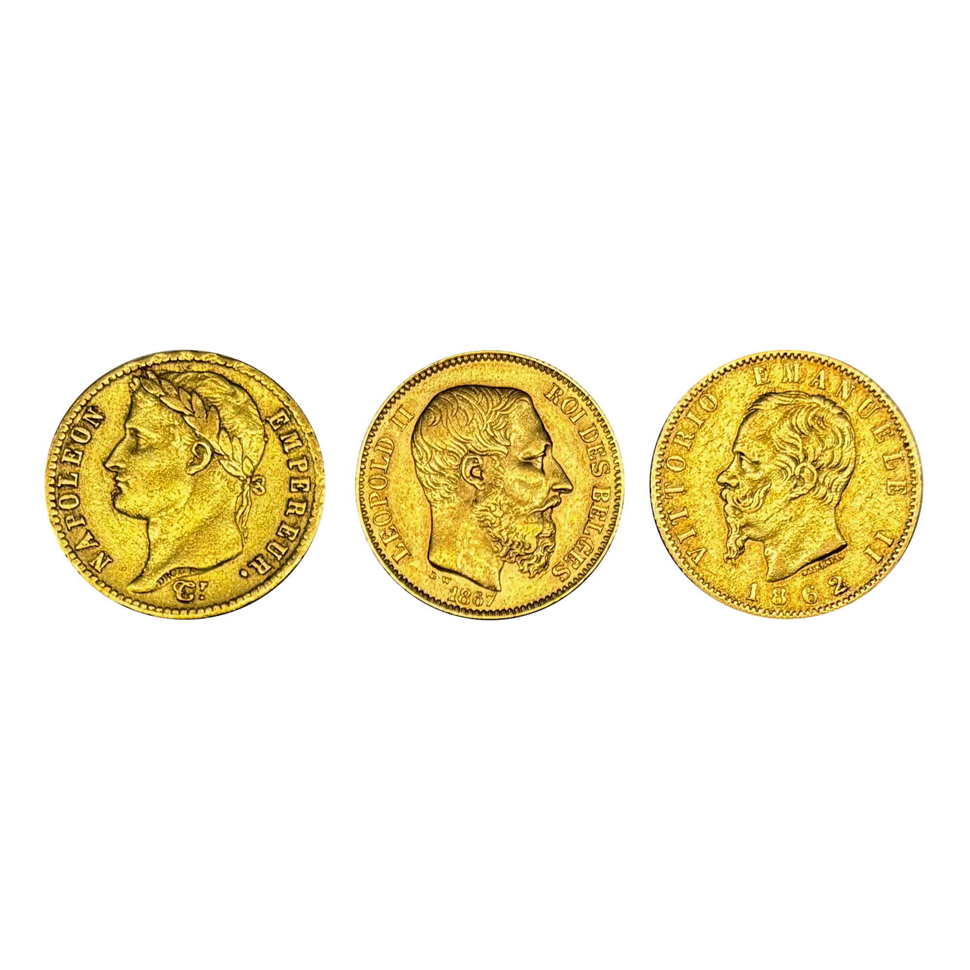 72. Lot format din 3 monede de 20 Franci, aur, Franța, 1862-1867