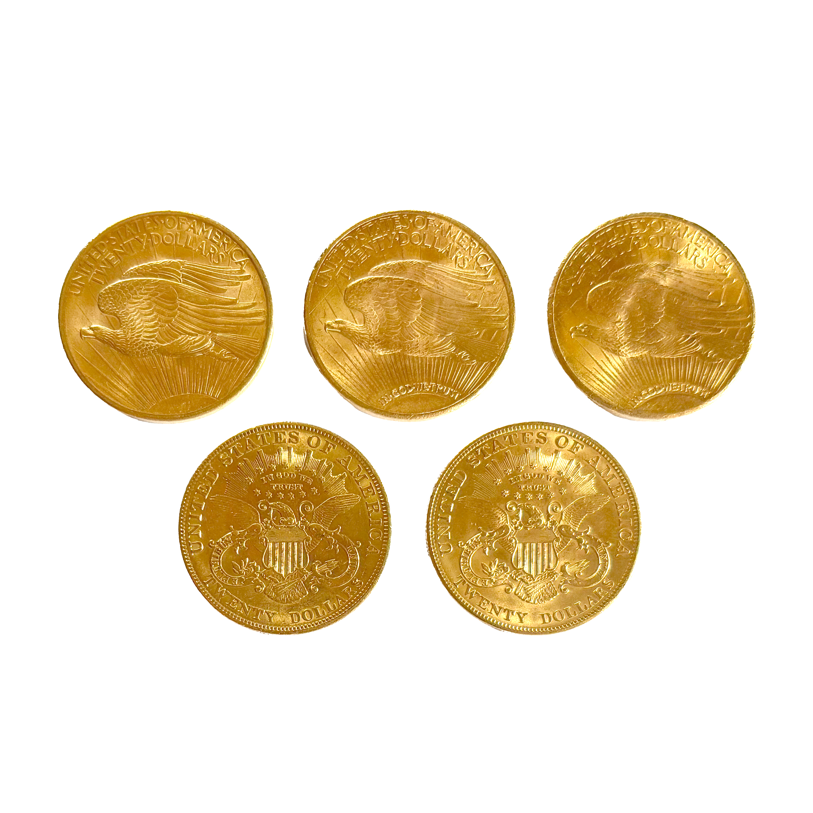 49. Lot format din 5 monede de 20 Dolari, aur, SUA
