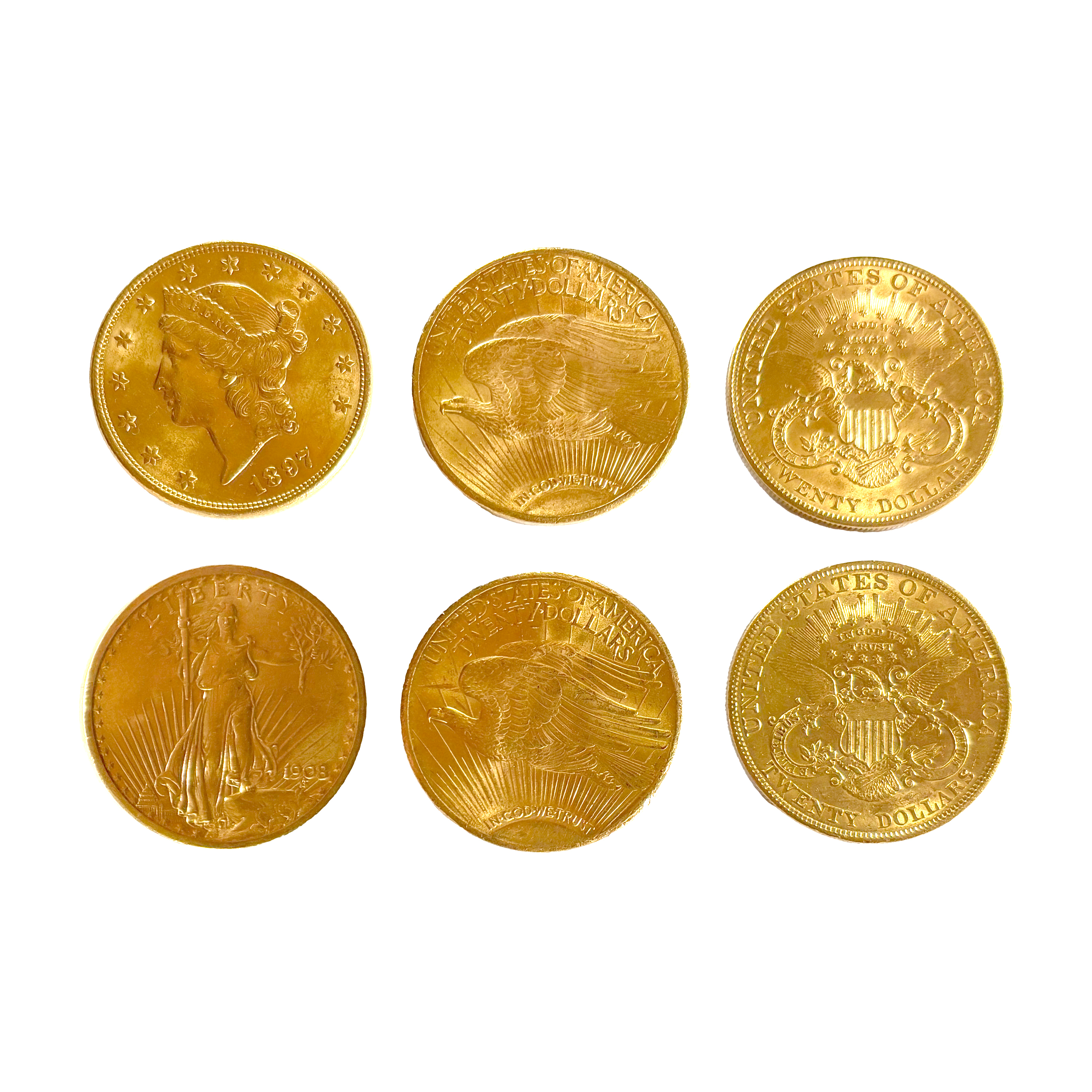 50. Lot format din 6 monede de 20 Dolari, aur, SUA, 1897-1908